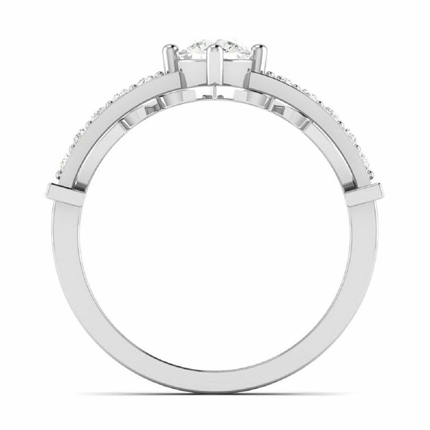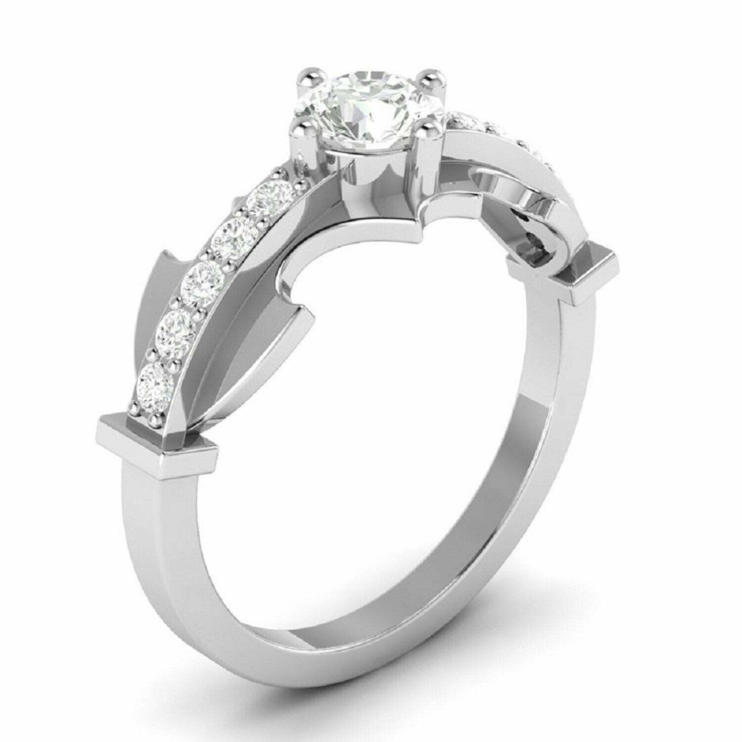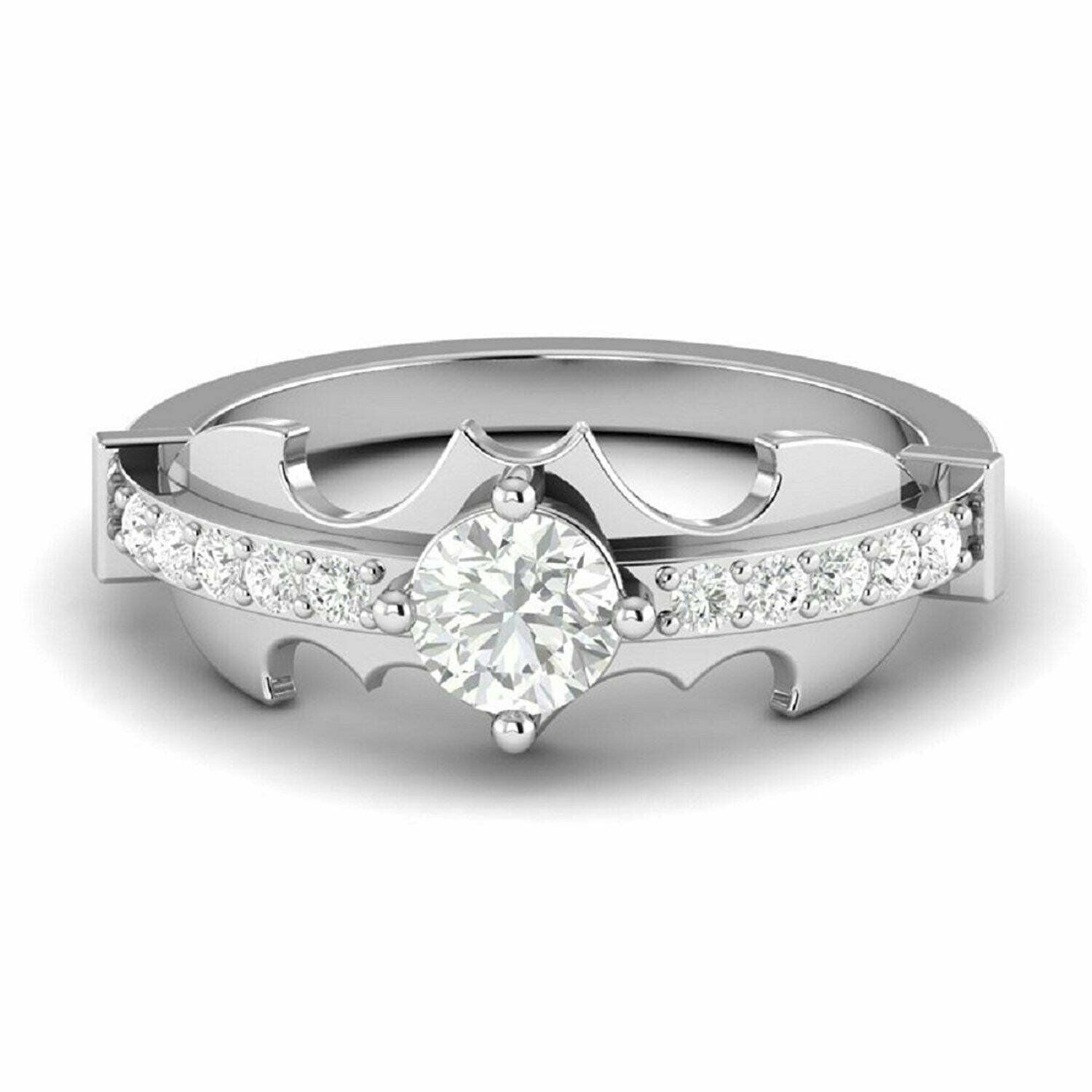1.3ct Round Cut VVS1 Diamond Bat Design Engagement Ring 14k White Gold Finish