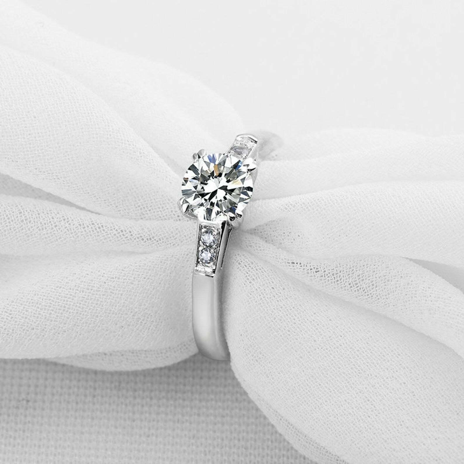 1.3ct Round Cut VVS1D Diamond Engagement Ring Solitaire with Accent 18k White Gold Finish