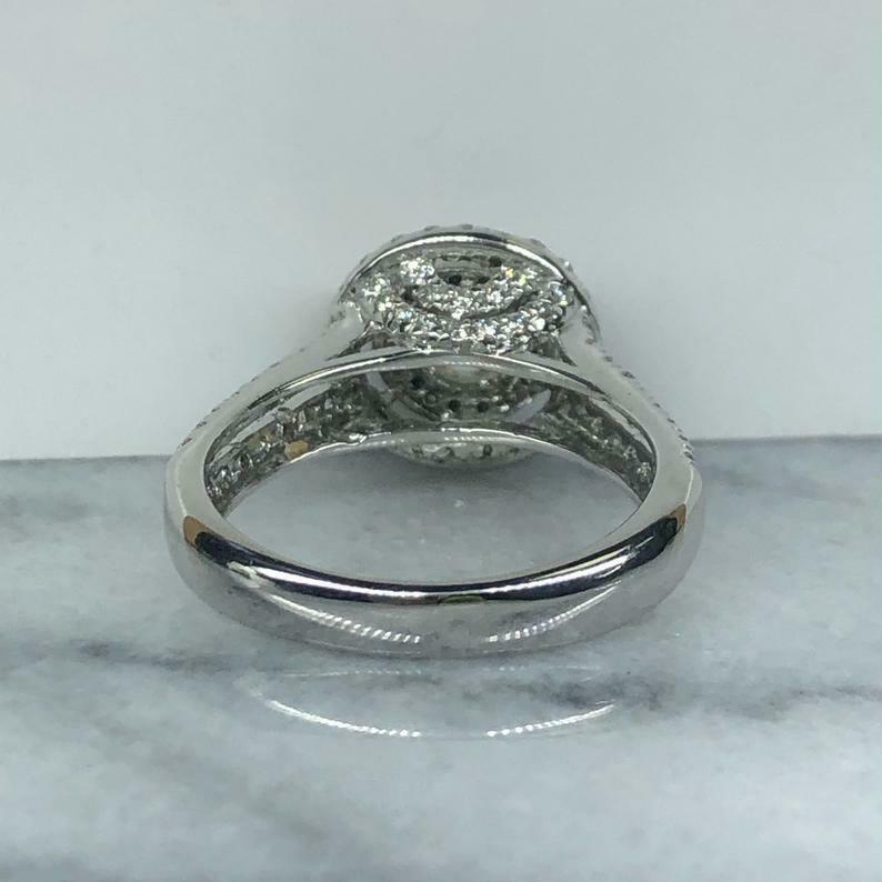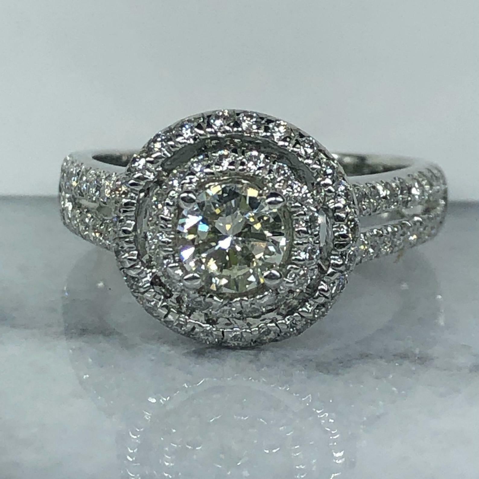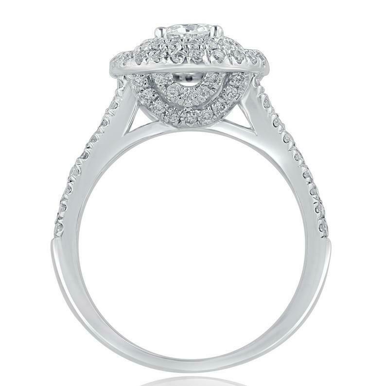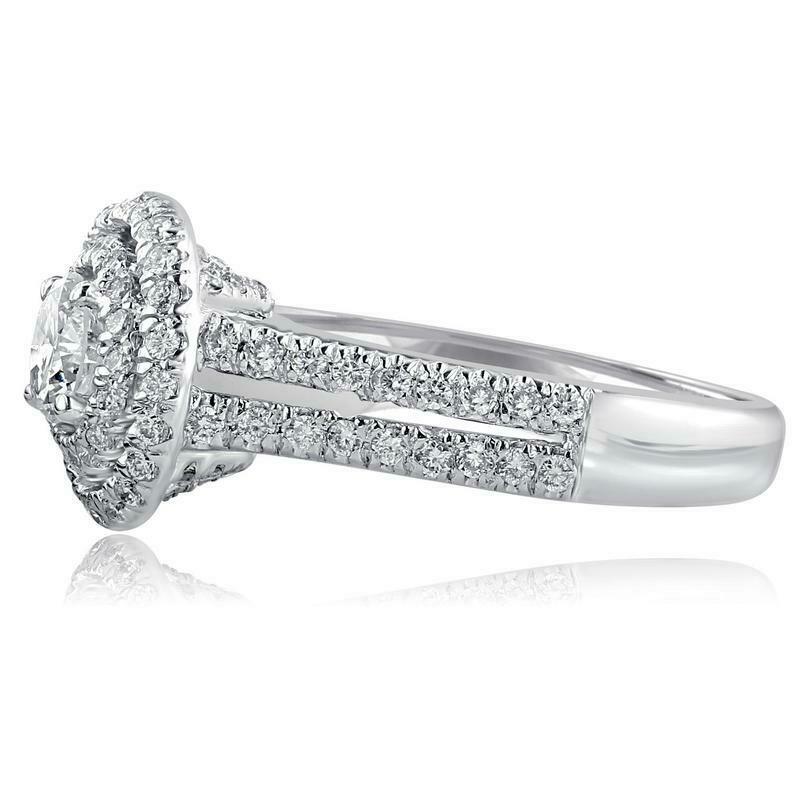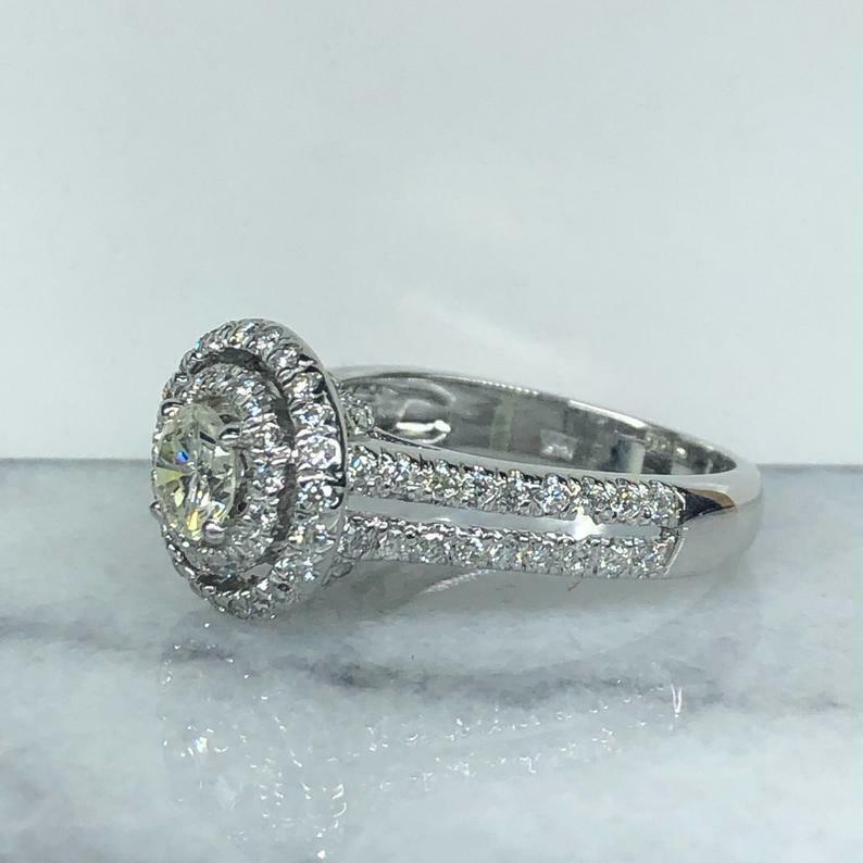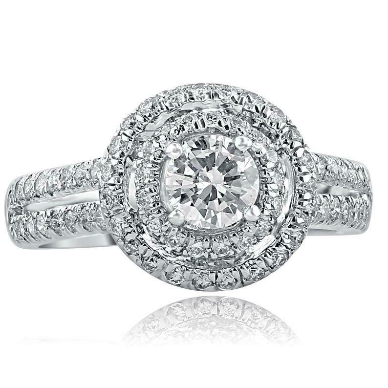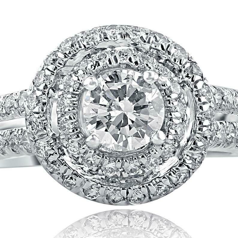 1.45ct Round Cut Diamond Engagement Ring Dual Halo Split Band 14k White Gold Over