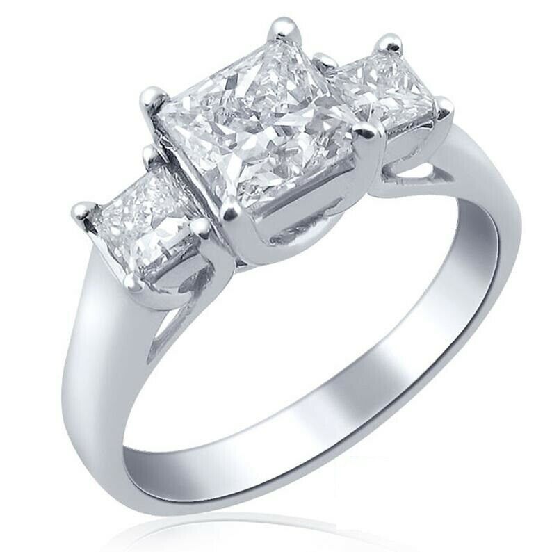 1.47ct Princess Cut Diamond Trilogy Engagement Ring Band 14k White Gold Finish