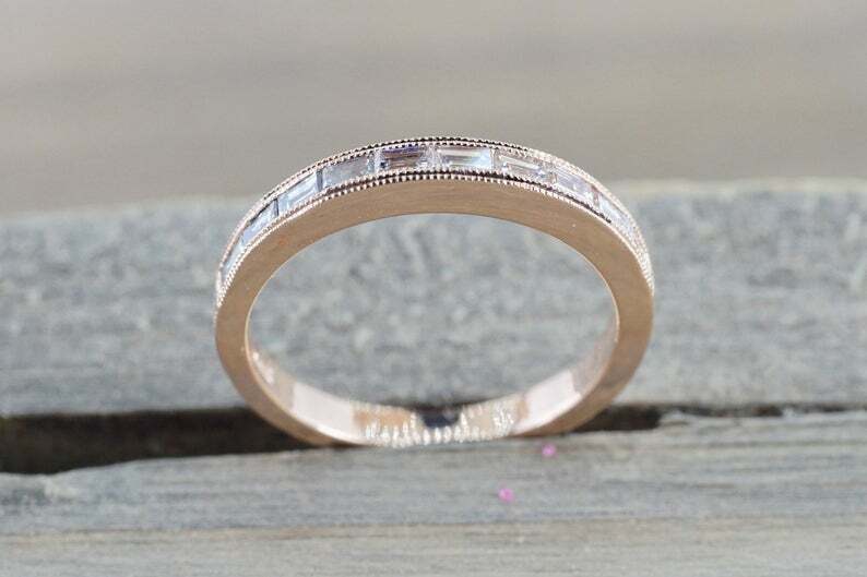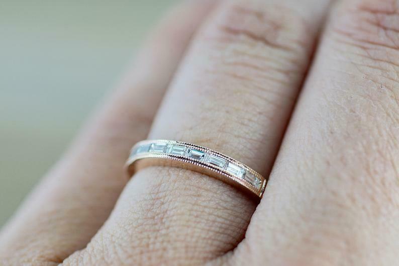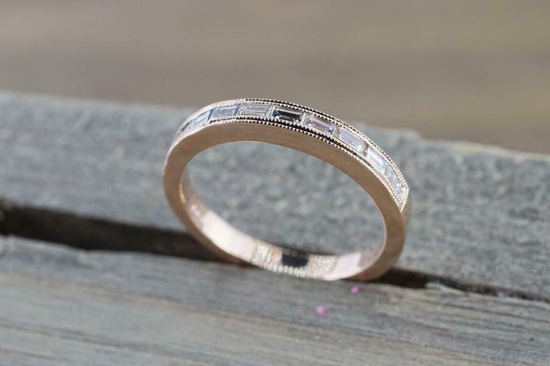 1.4ct Baguette Cut Diamond Wedding Band Channel Half Eternity 14k Rose Gold Over