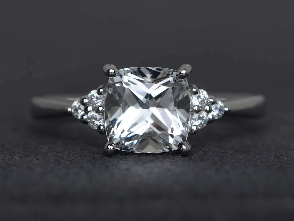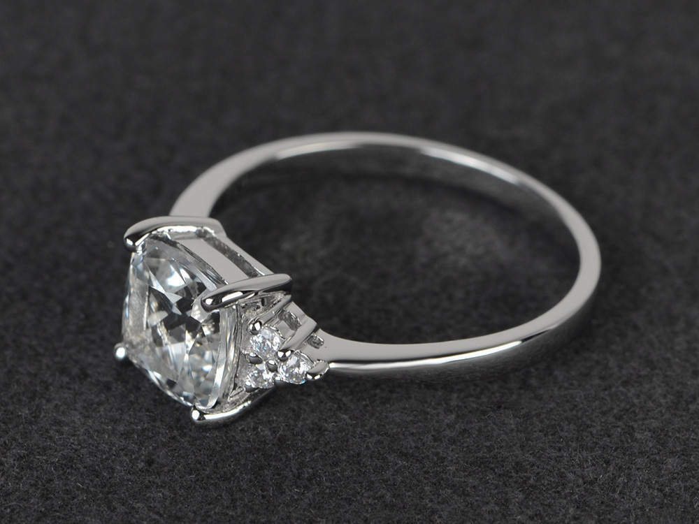 1.4ct Cushion Cut Diamond Engagement Ring 14k White Gold Finish Accent Solitaire
