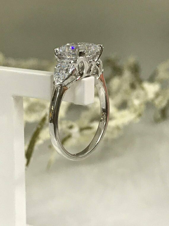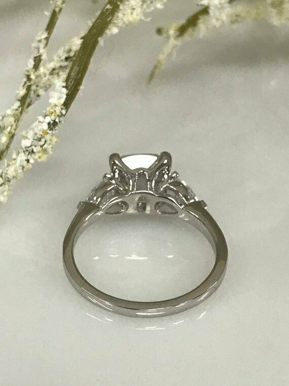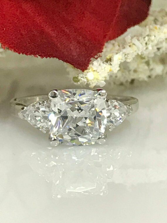 1.4ct Cushion Cut VVS1 Diamond Three Stone Engagement Ring 14k White Gold Finish