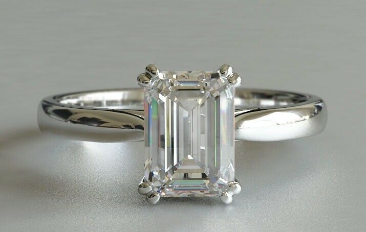 1.4ct Emerald Cut Diamond Engagement Ring Solitaire Promise 14k WhiteGold Finish