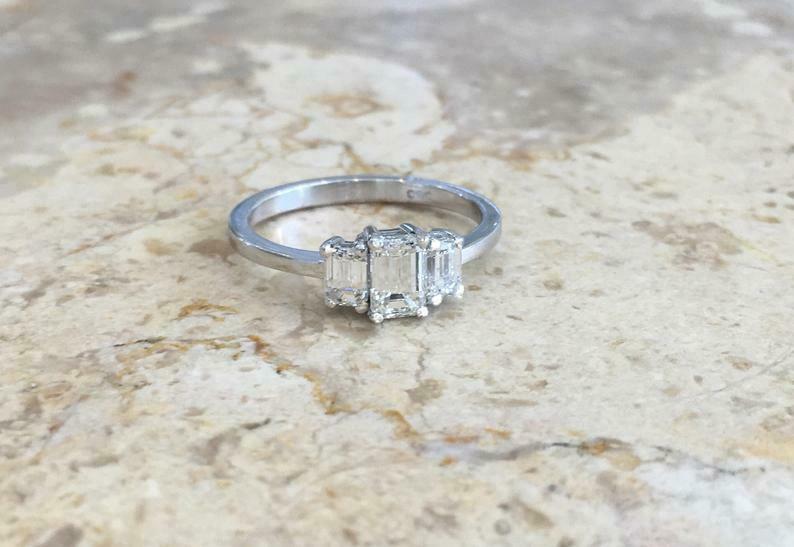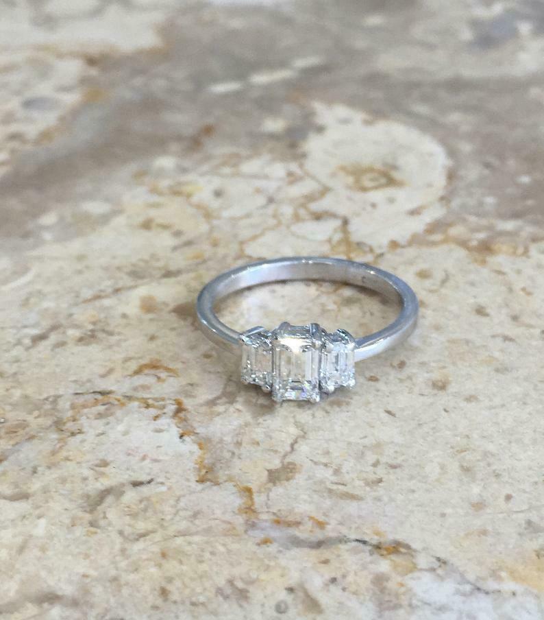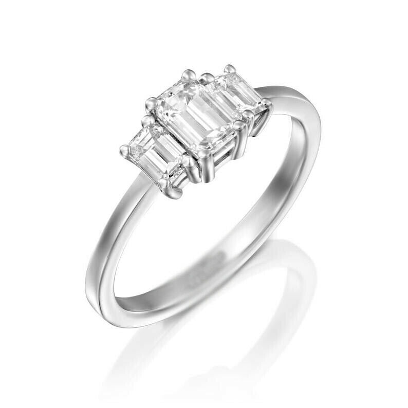 1.4ct Emerald Cut VVS1D Diamond Engagement Ring Trilogy 14k White Gold Finish