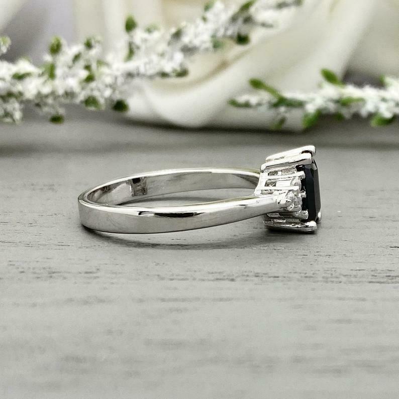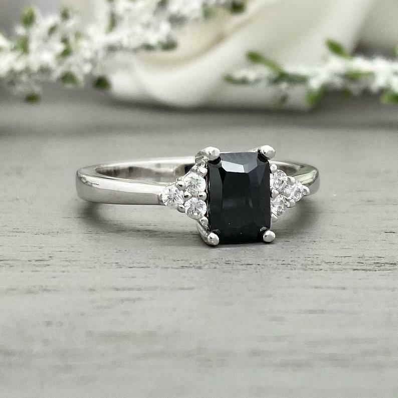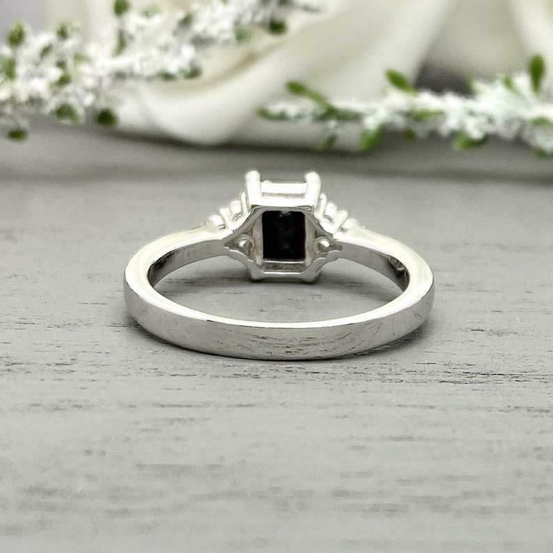 1.4ct Engagement Ring Emerald Cut Black Diamond Solitaire Petite 14k White Gold Finish
