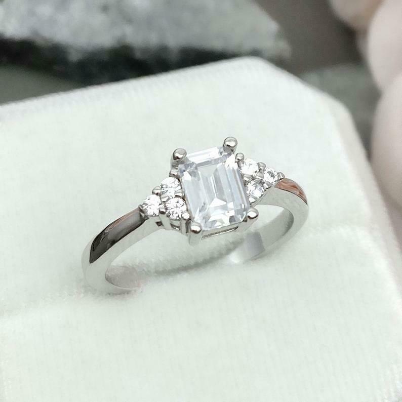 1.4ct Engagement Ring Emerald Cut Diamond Solitaire Petite 14k White Gold Finish