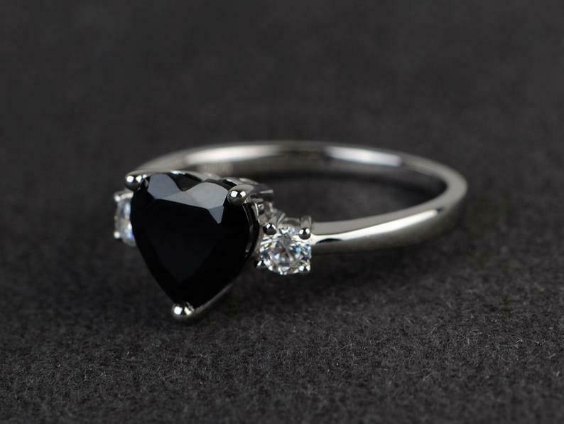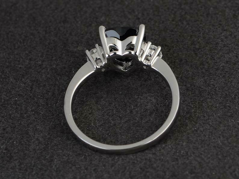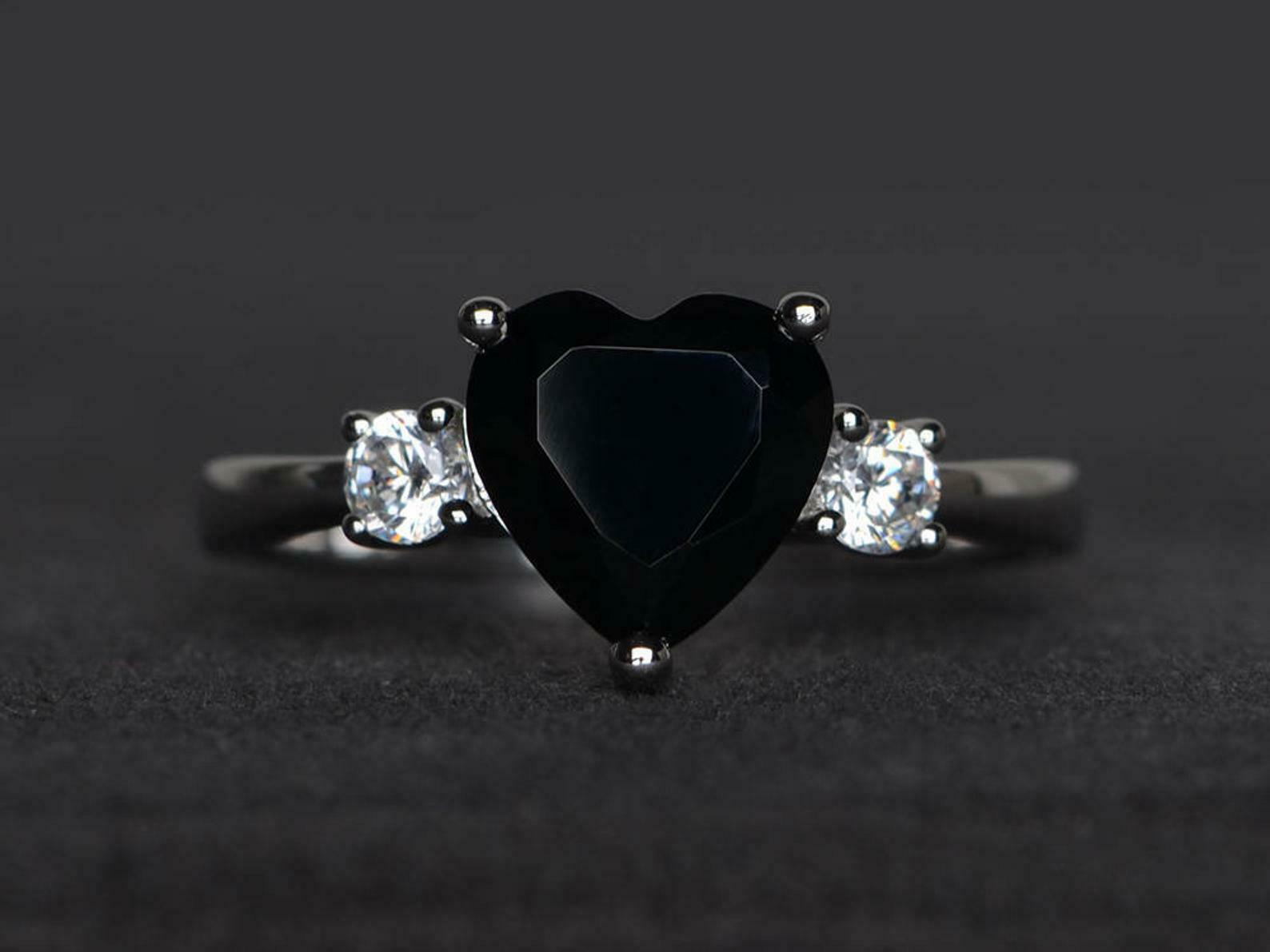 1.4ct Engagement Ring Heart Cut Black Diamond Three Stone 14k White Gold Finish
