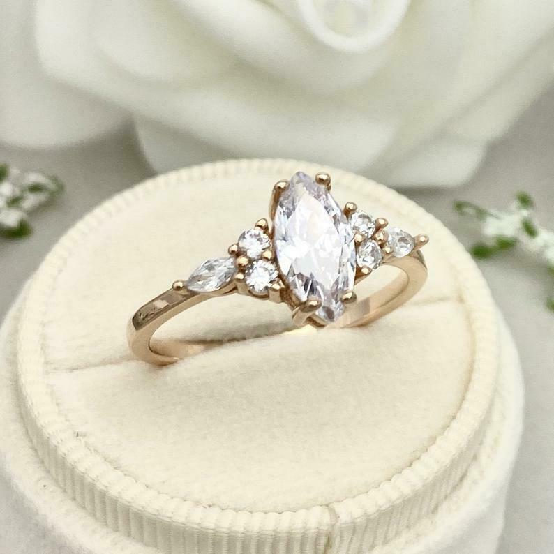 1.4ct Engagement Ring Marquise Cut Diamond Solitaire Petite 14k Yellow Gold Over