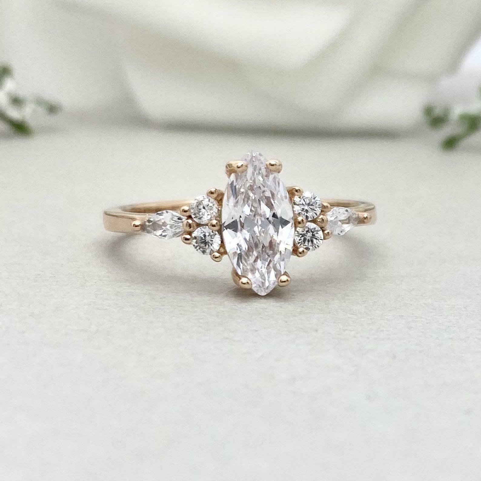 1.4ct Engagement Ring Marquise Cut Diamond Solitaire Petite 14k Yellow Gold Finish