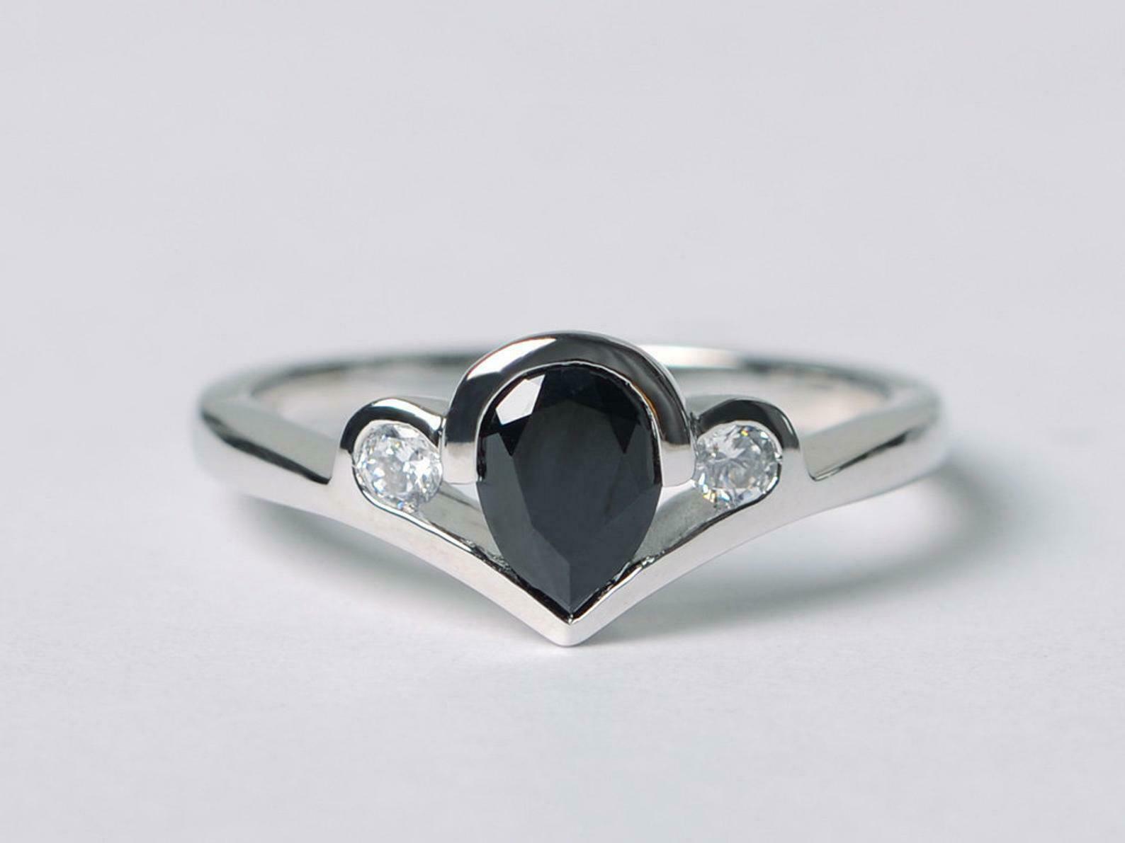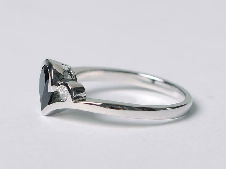 1.4ct Engagement Ring Pear Cut Diamond Crown Minimalist 14k White Gold Finish