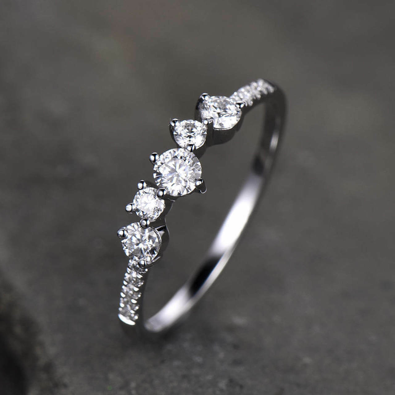 1.4ct Engagement Ring Round Cut Diamond Minimalist Design 14k White Gold Finish