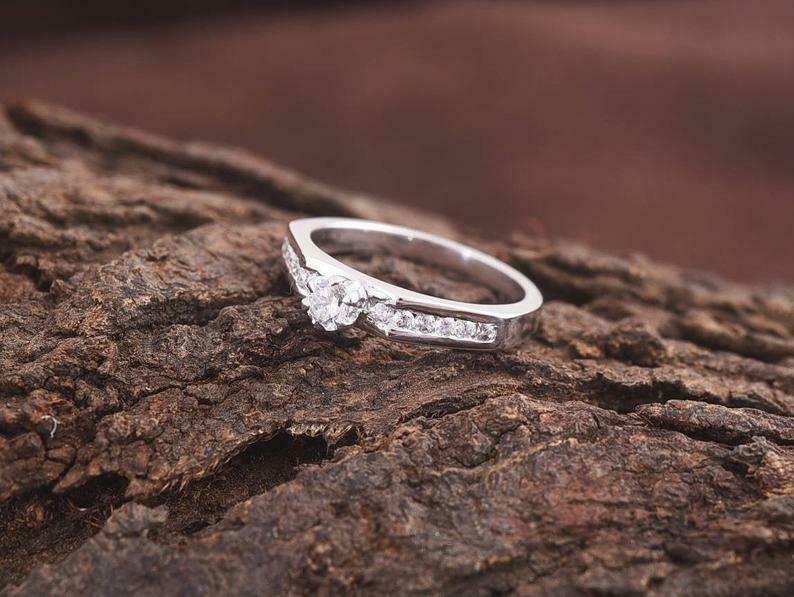 1.4ct Engagement Ring Round Cut Diamond Solitaire with Accent 14k WhiteGold Over