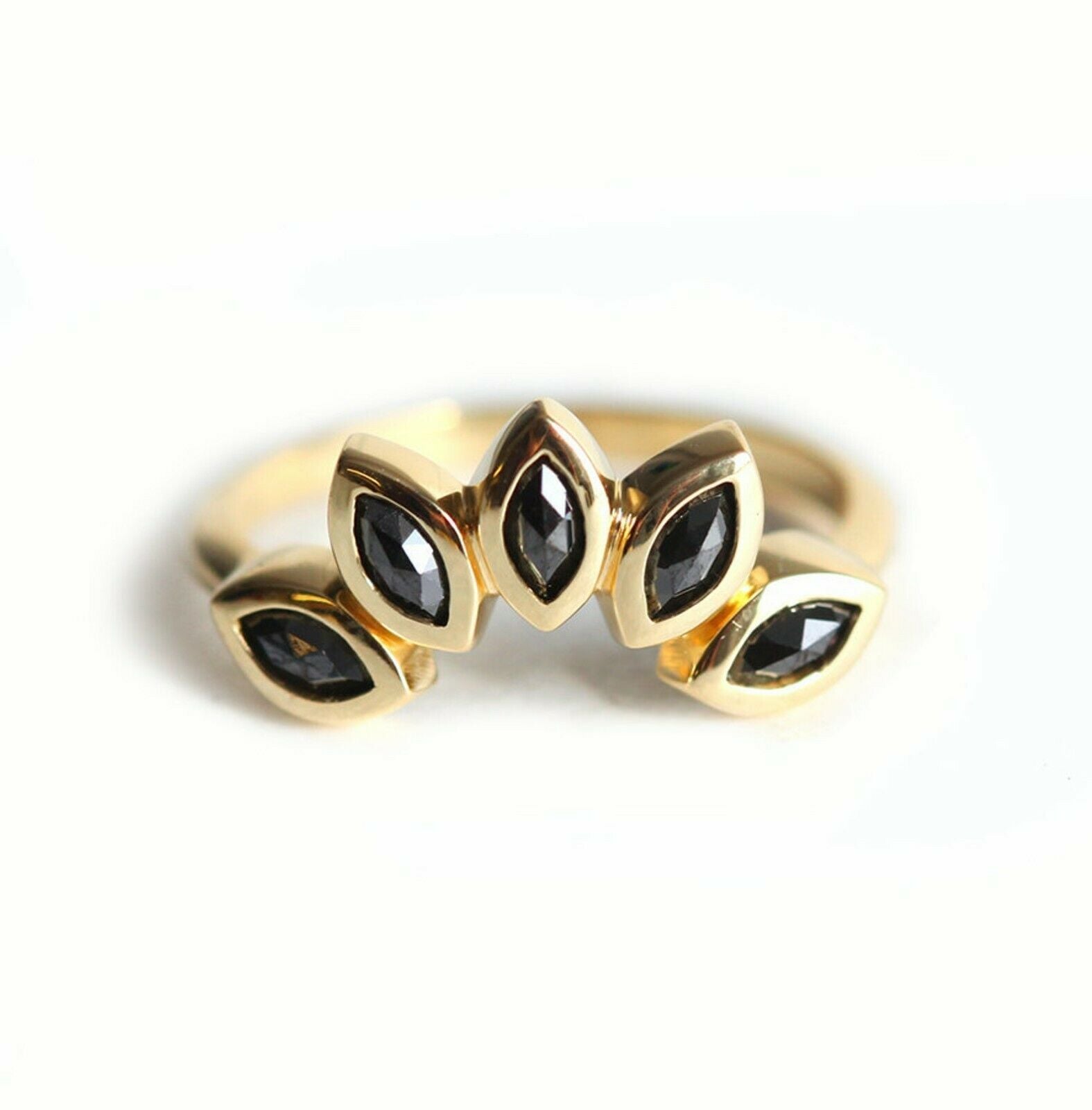 1.4ct Marquise Cut Black Diamond Engagement Ring 14k YellowGold Over Crown Tiara