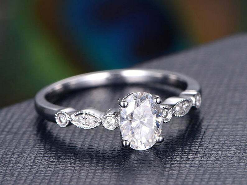 1.4ct Oval Cut Diamond Solitaire Ring 14k White Gold Finish with Round Accents