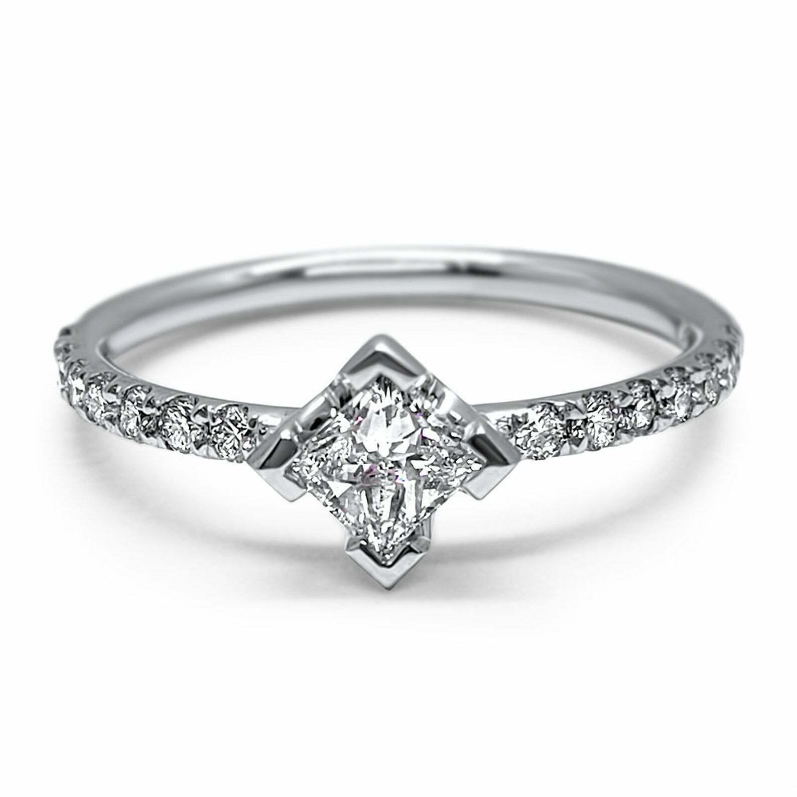 1.4ct Princess Cut Diamond Engagement Ring Accents Solitaire 14k White Gold Over