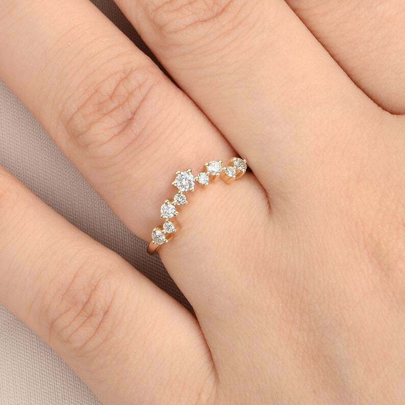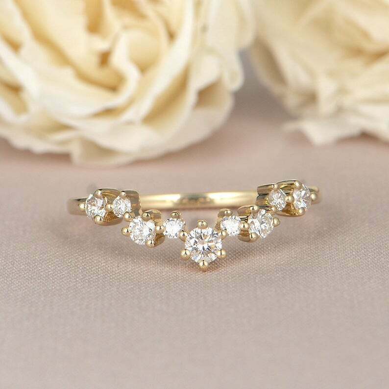 1.4ct Round Cut Diamond Curved Stackable Engagement Ring 14k Yellow Gold Finish