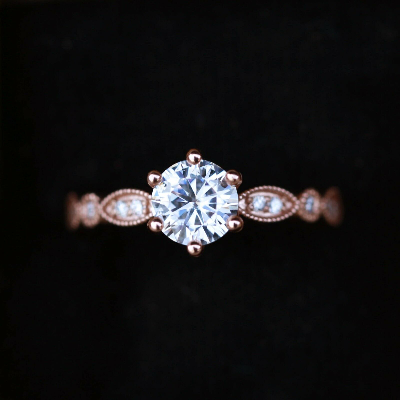 1.4ct Round Cut Diamond Engagement Ring 14k Rose Gold Finish Accents Solitaire