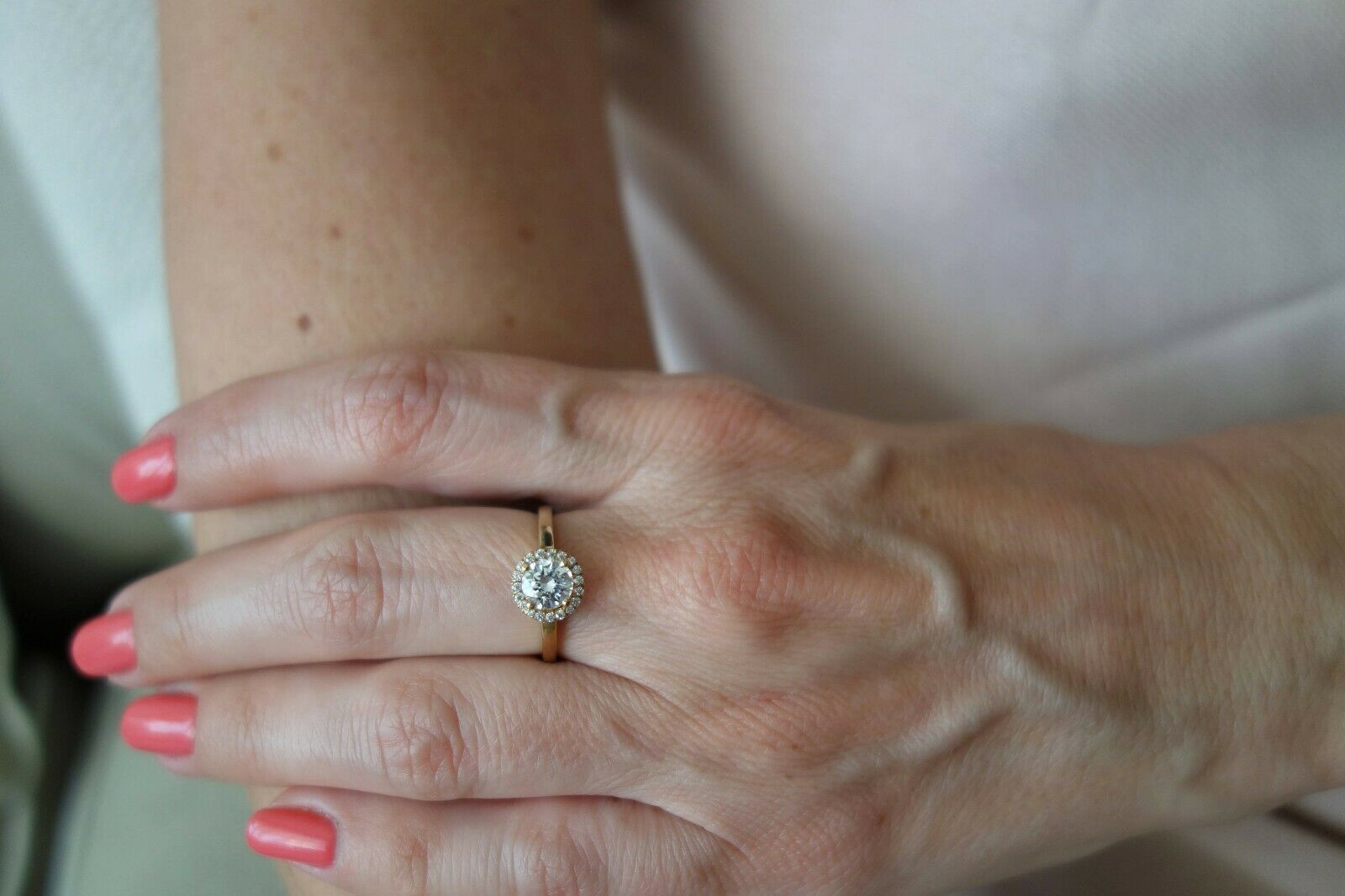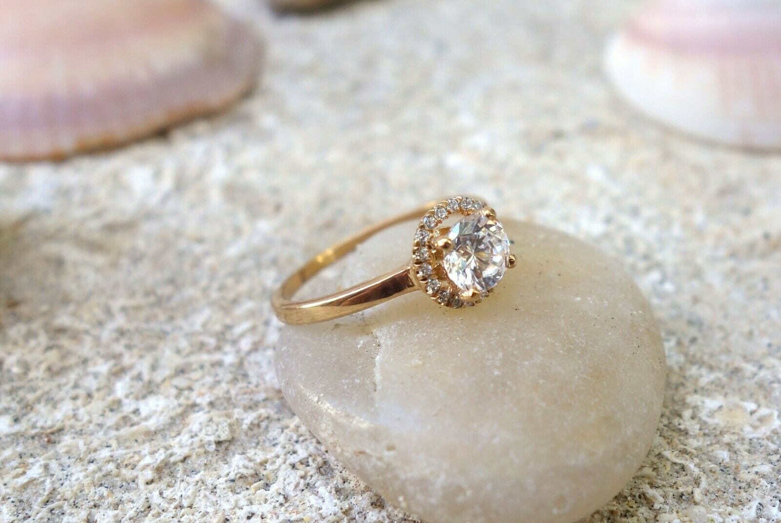 1.4ct Round Cut Diamond Engagement Ring 14k Yellow Gold Finish Halo Solitaire