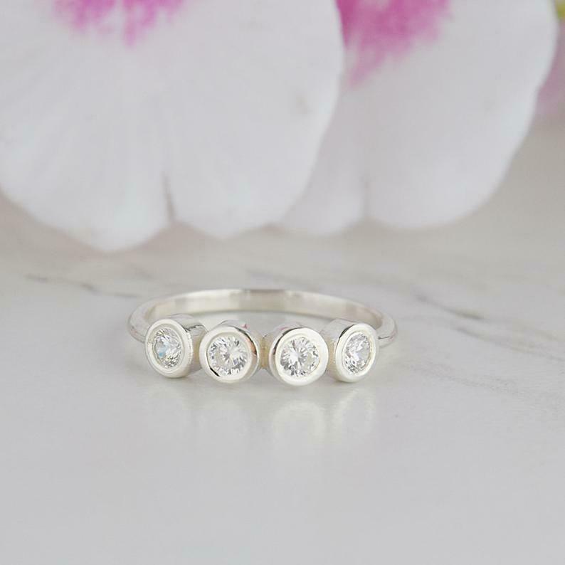 1.4ct Round Cut Diamond Engagement Ring Four Stone Women 14k White Gold Finish