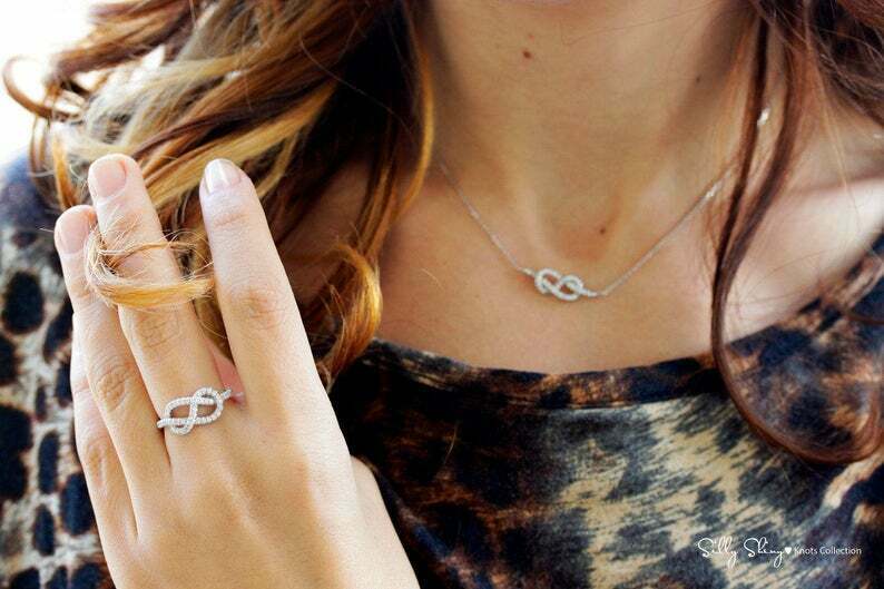 1.4ct Round Cut Diamond Engagement Ring Infinity Love Knot 14k White Gold Finish