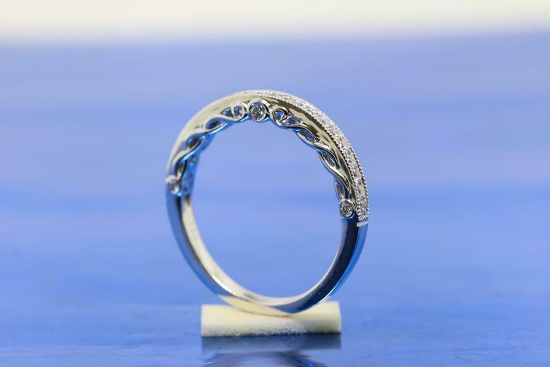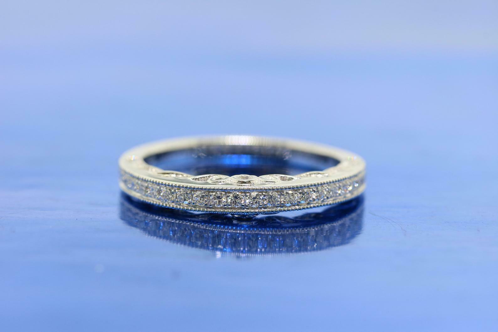 1.4ct Round Cut Diamond Wedding Band Mligrain Filigree 14k White Gold Finish