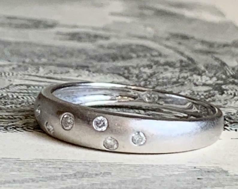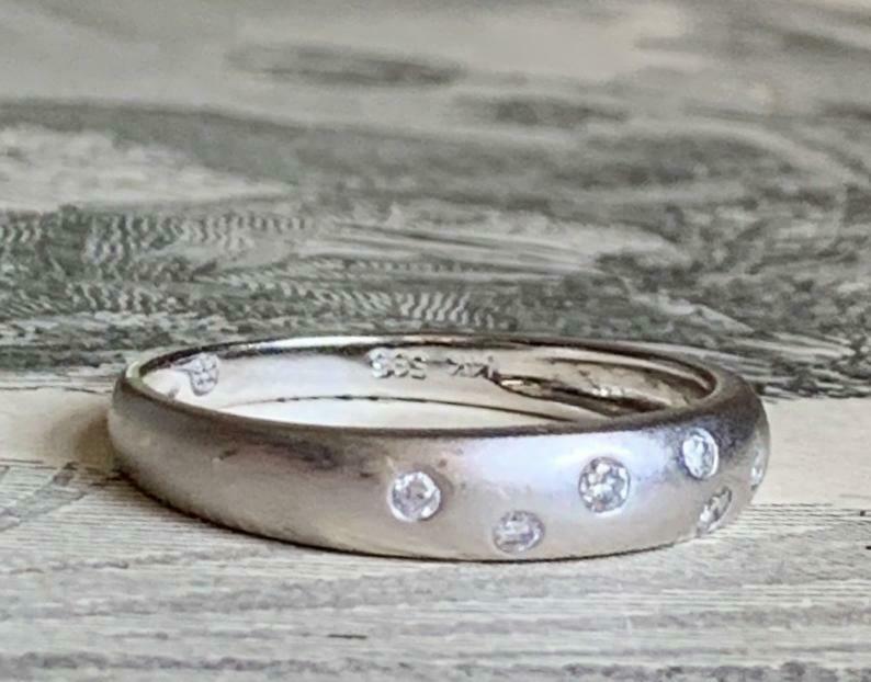 1.4ct Round Cut Diamond Wedding Ring Band Flush Set Stylish 14k White Gold Finish