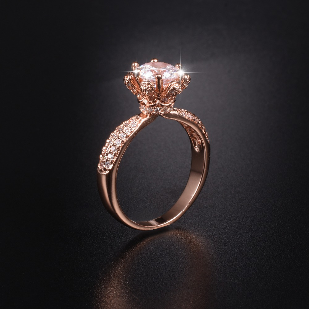 1.4ct Round Cut VVS1D Diamond Engagement Ring 14k Rose Gold Finish Flower Design