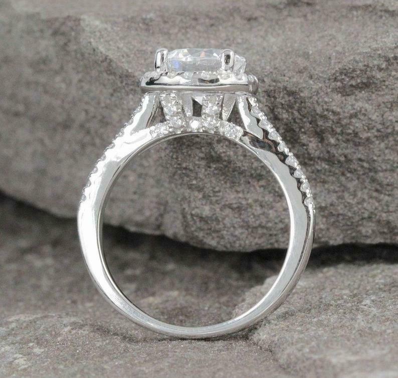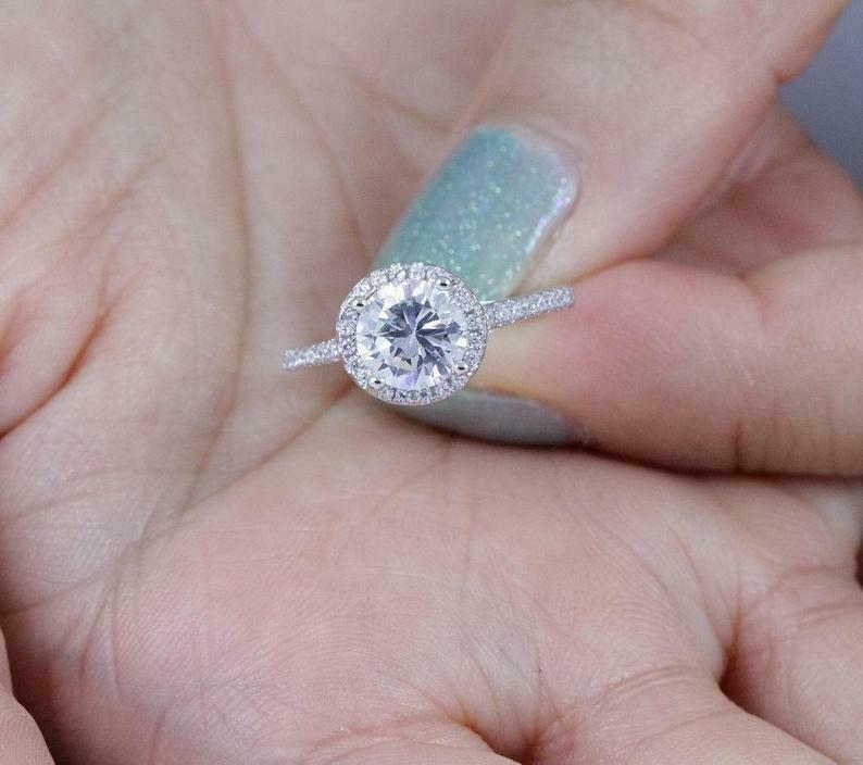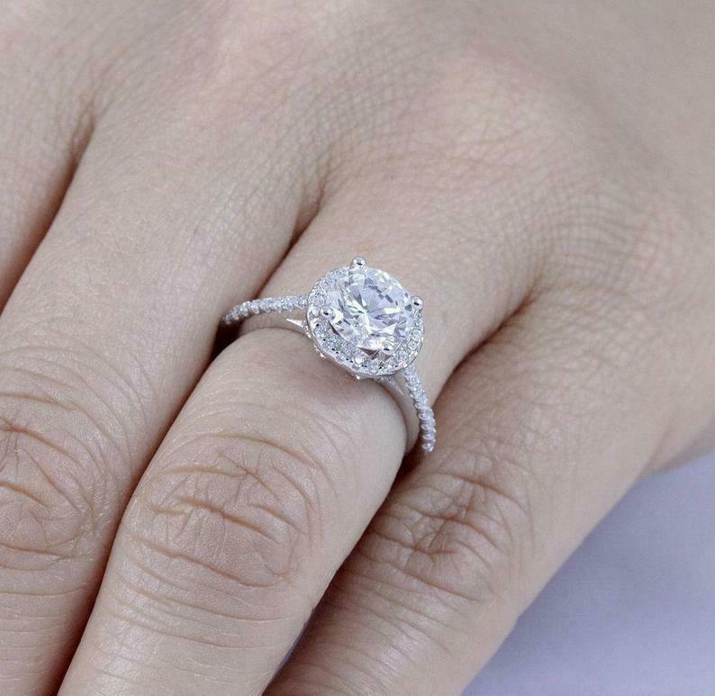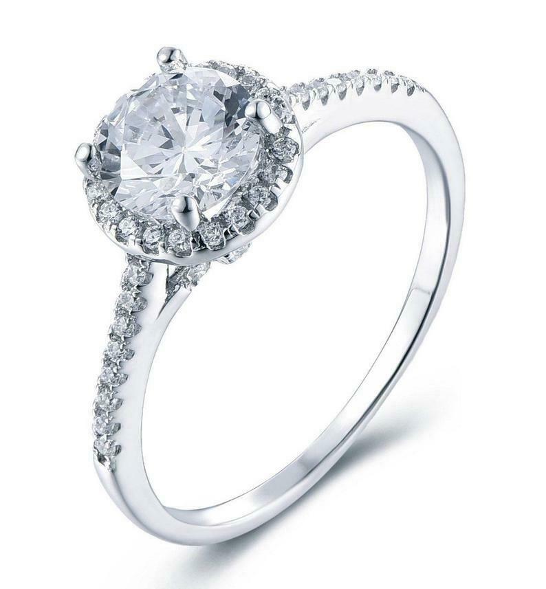 1.4ct Round Cut VVS1D Diamond Engagement Ring Halo Solitaire 14k White Gold Over