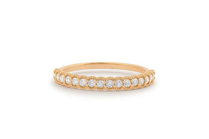 1.4ct Wedding Band Round Cut Diamond Milgrain Stackable 14k Rose Gold Finish