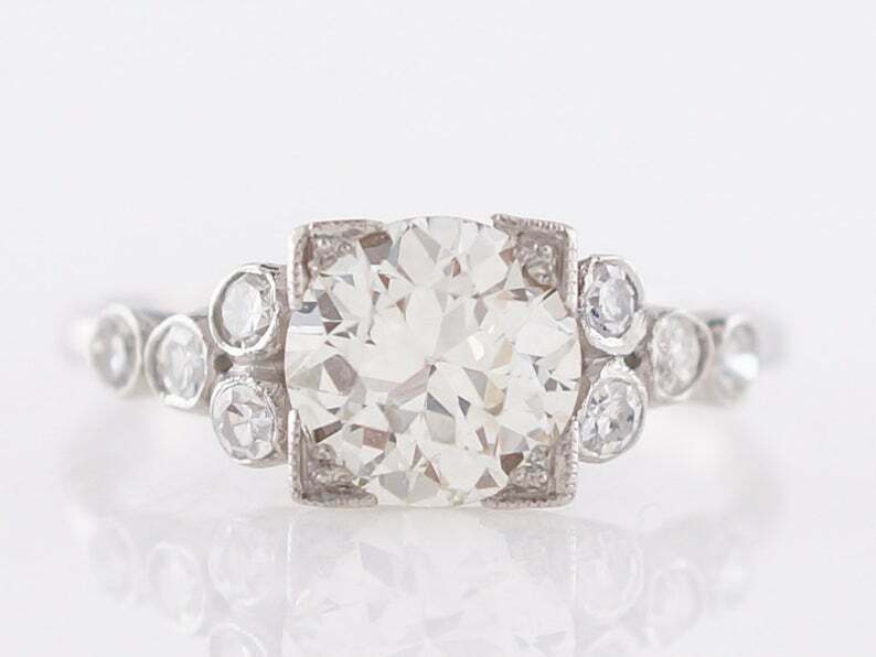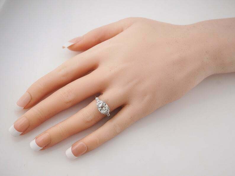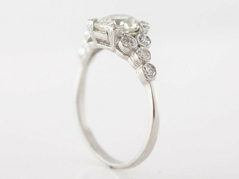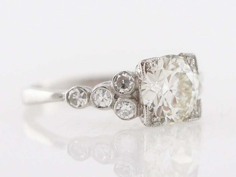 1.52ct Round Cut Diamond Engagement Ring Vintage Art Deco 14k White Gold Finish