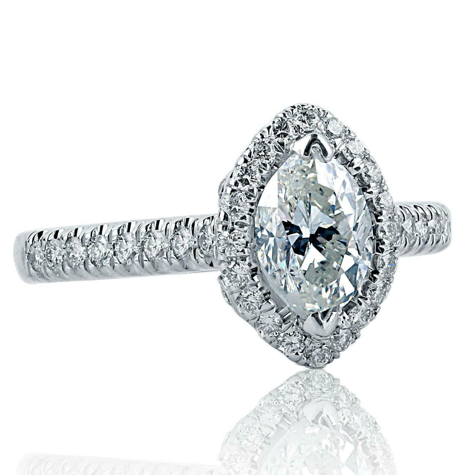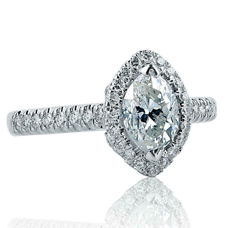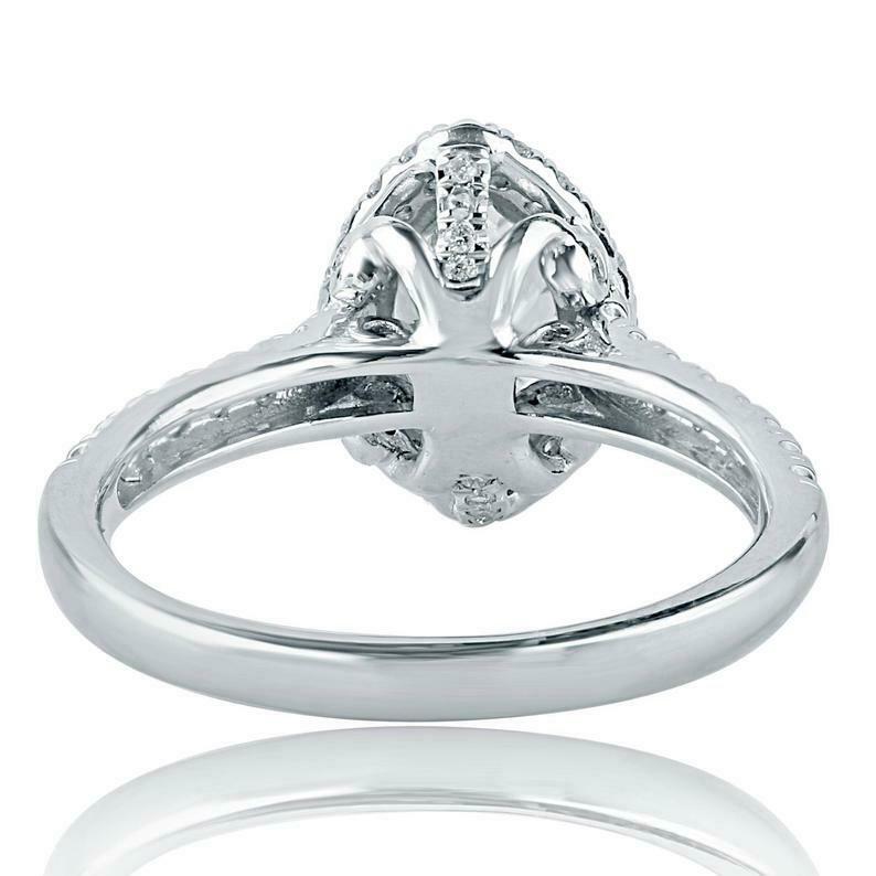 1.53ct Marquise Cut Diamond Engagement Ring Round Accent Halo 14k White Gold Over