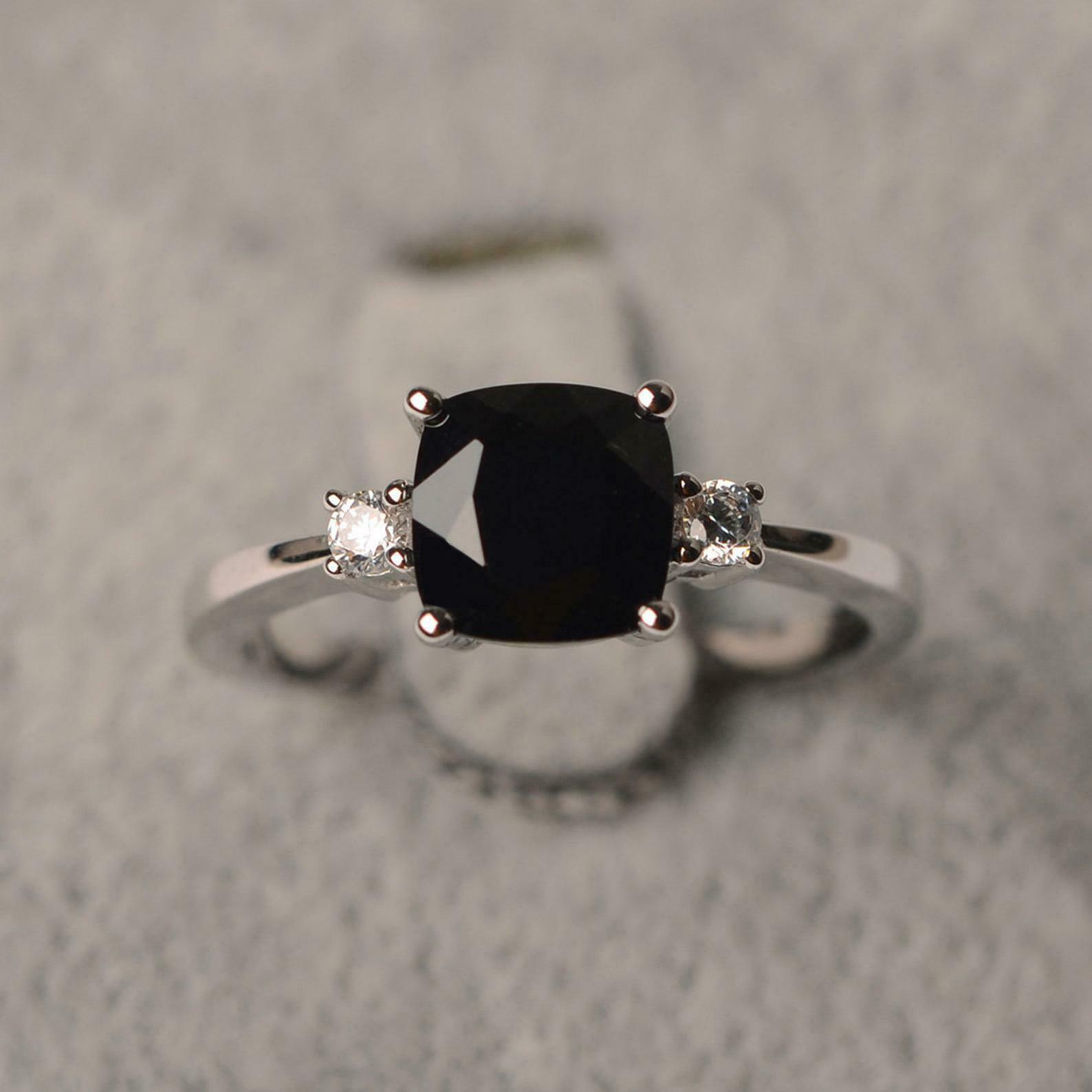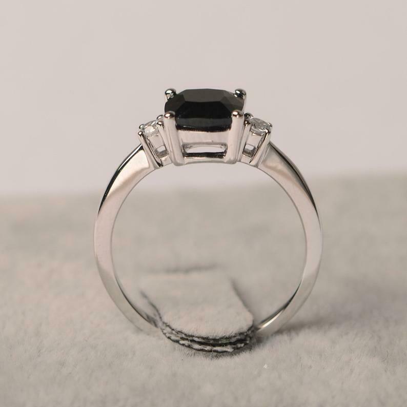 1.54ct Cushion Cut Black Diamond Engagement Ring Trilogy 14k White Gold Finish