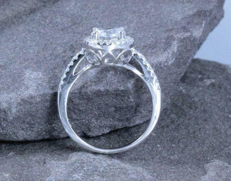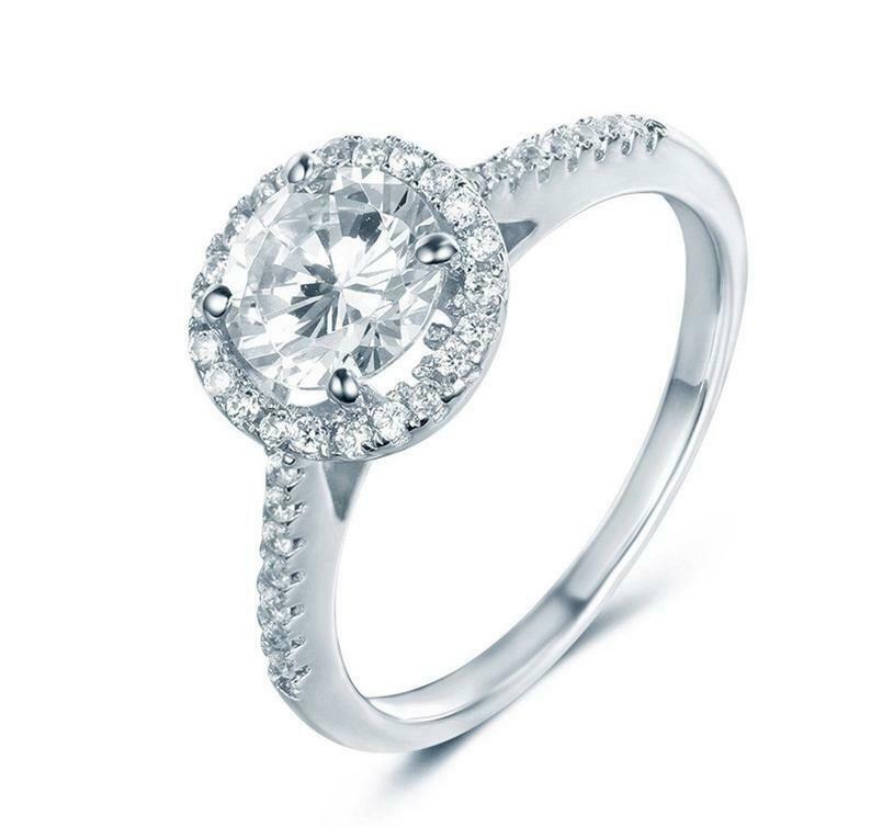 1.55ct Round Cut Diamond Engagement Ring Solitaire Halo 14k White Gold Finish