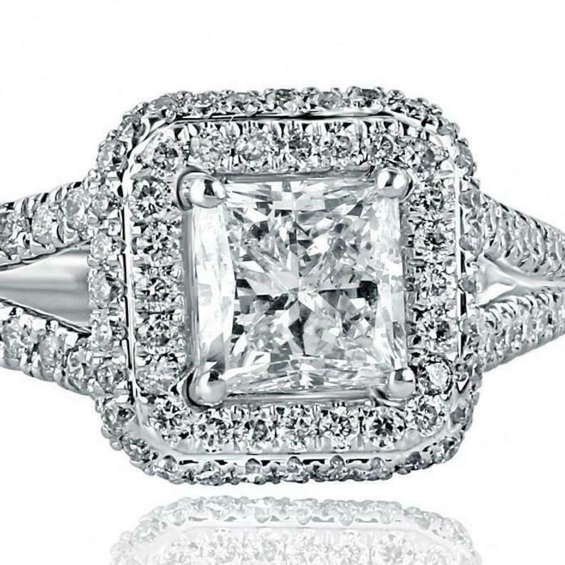 1.56ct Princess Diamond Engagement Ring Dual Halo Split Band 14k White Gold Over