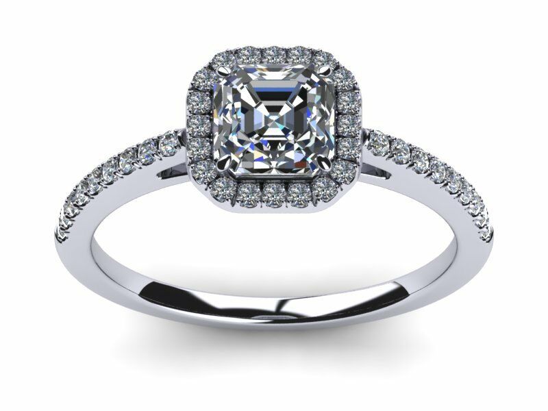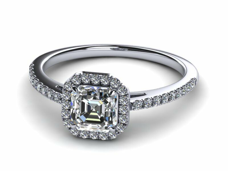 1.5ct Asscher Cut Accent Solitaire Halo Engagement Ring 14k WhiteYw Gold Finish