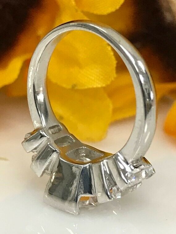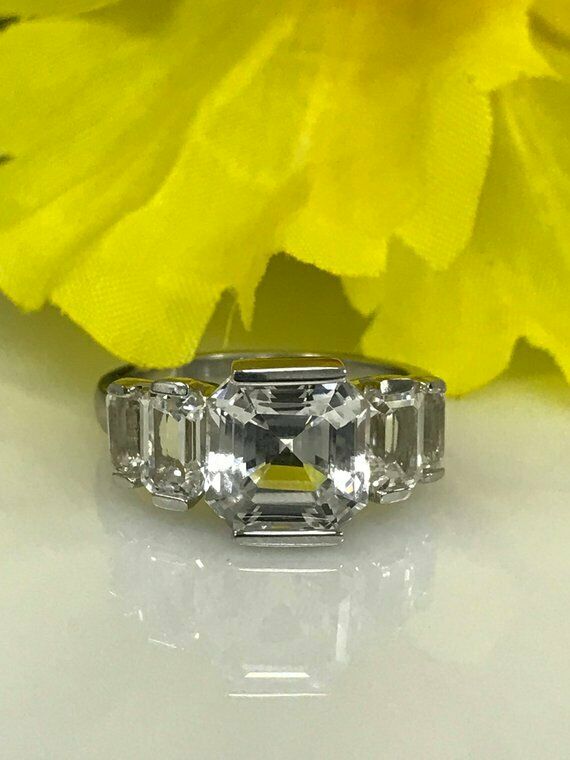 1.5ct Asscher Cut VVS1 Diamond Five Stone Engagement Ring 14k White Gold Finish