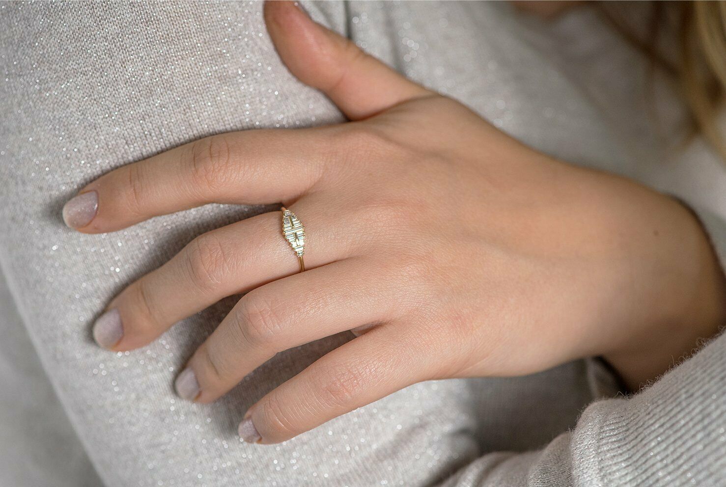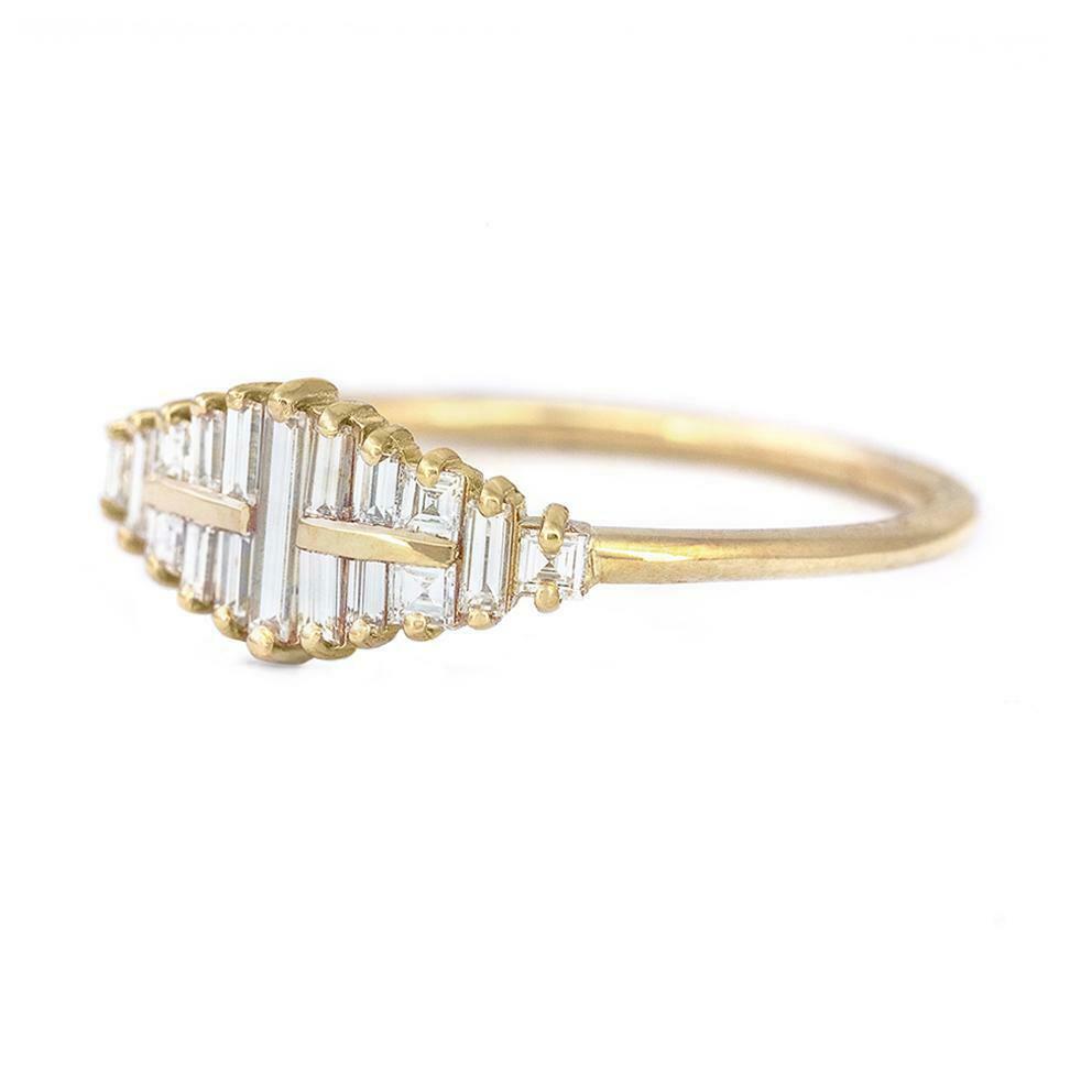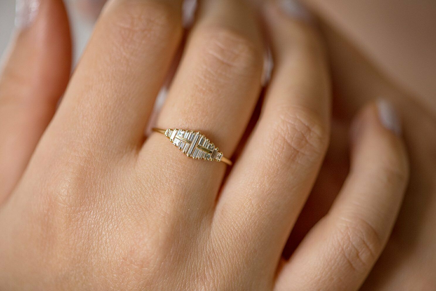 1.5ct Baguette Cut Diamond Engagement Ring 14k Yellow Gold Finish Unique Cluster