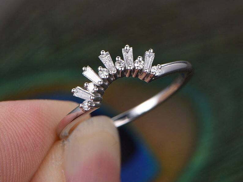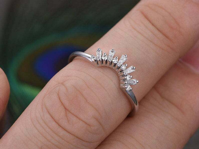 1.5ct Baguette Cut Diamond Engagement Ring Crown Art Deco 14k White Gold Finish