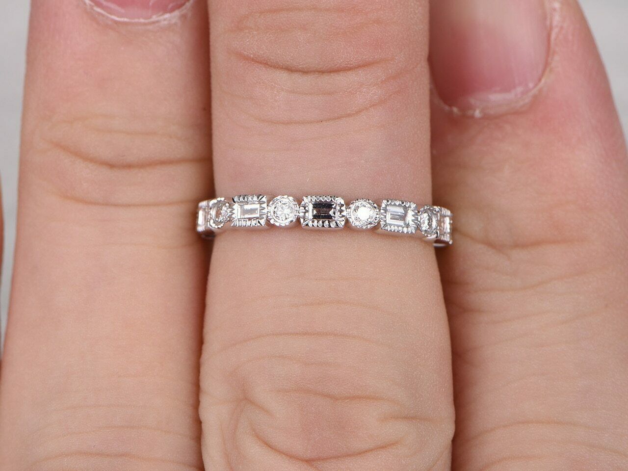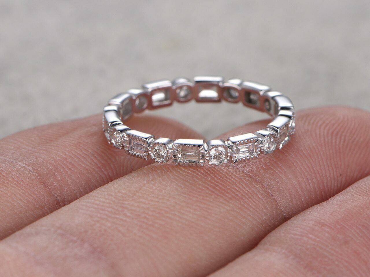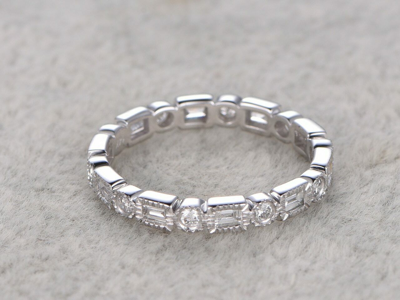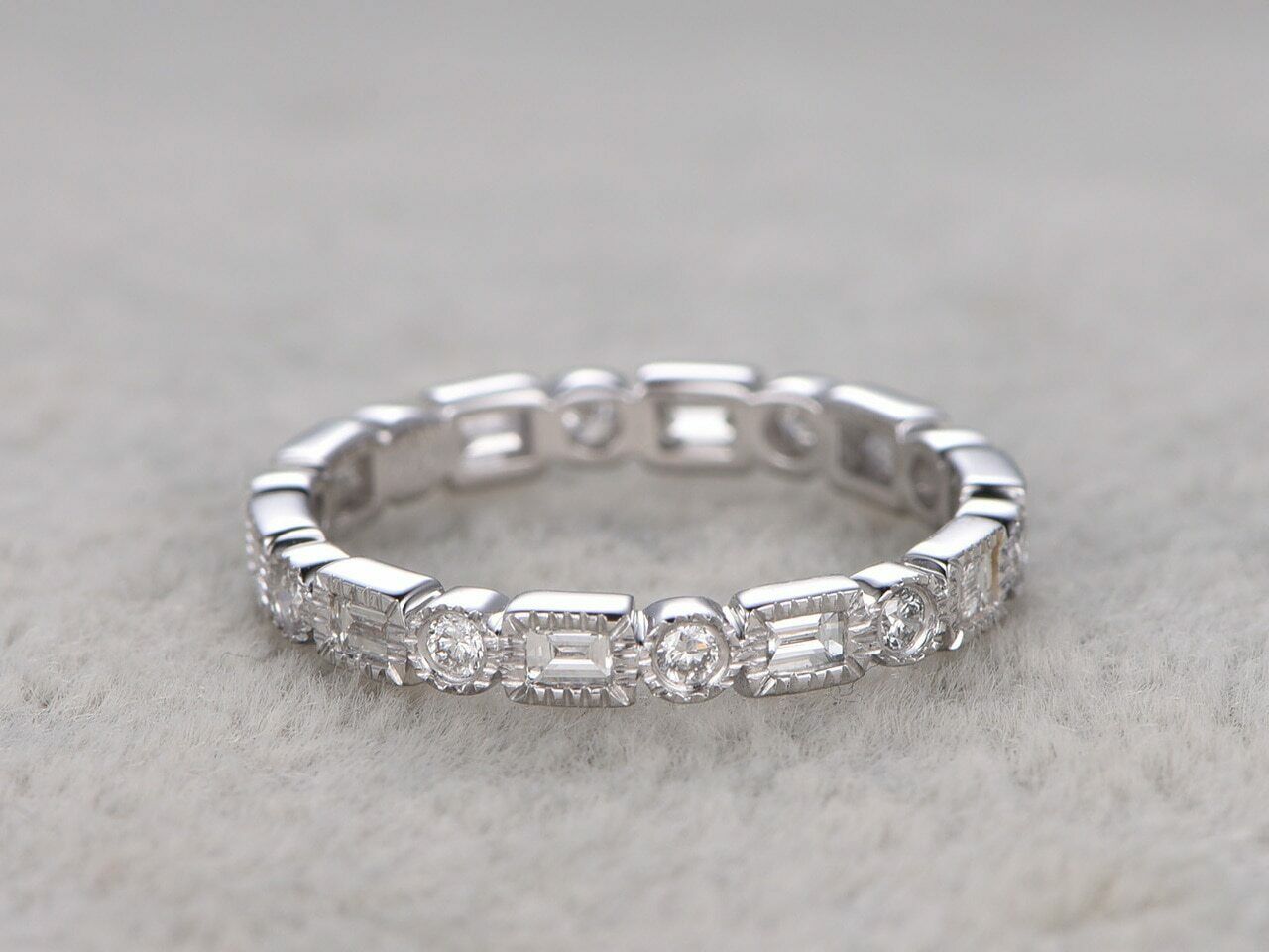 1.5ct Baguette Cut Diamond Wedding Band Stackable Eternity 14k White Gold Finish