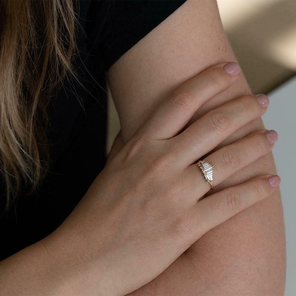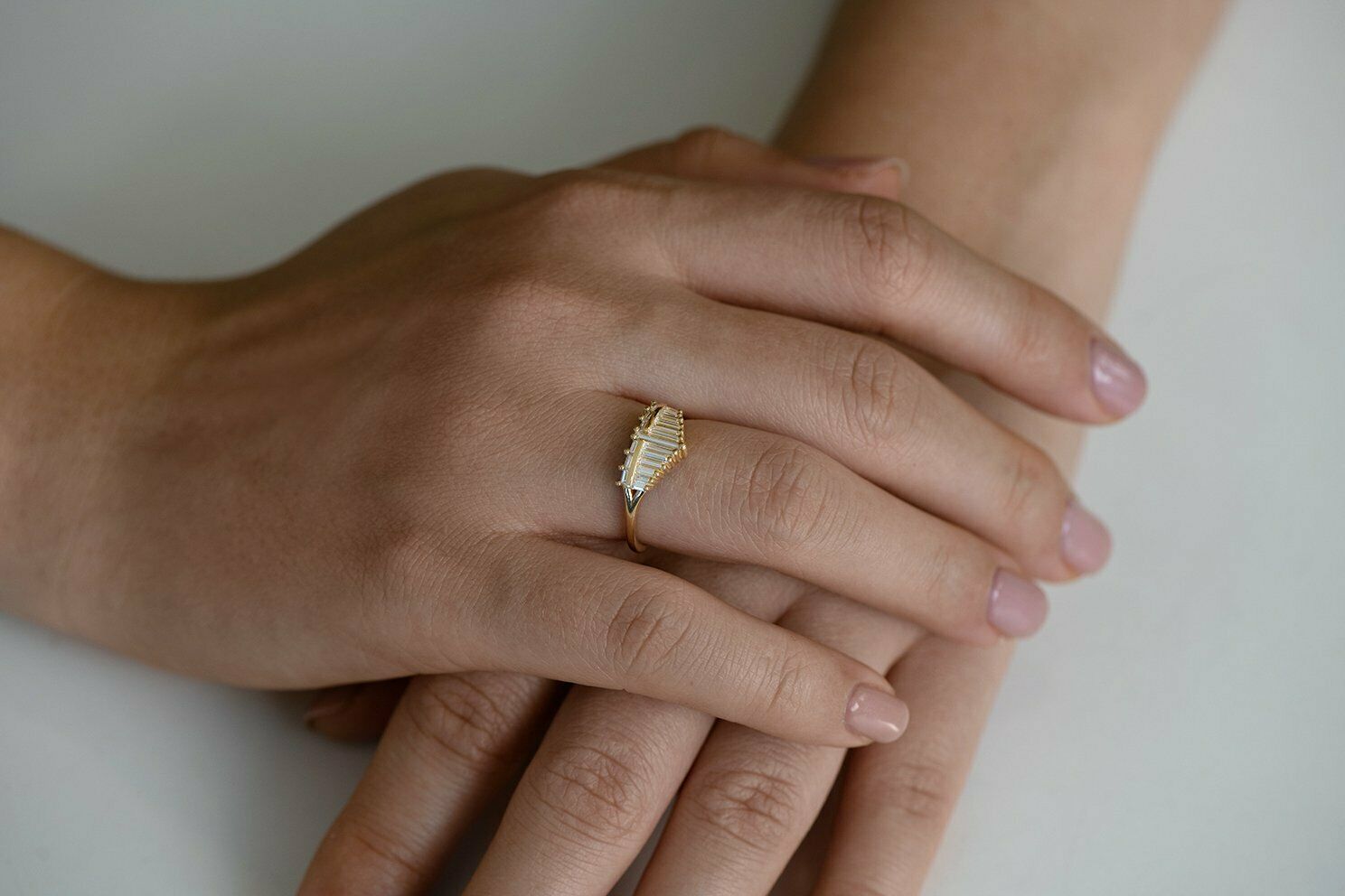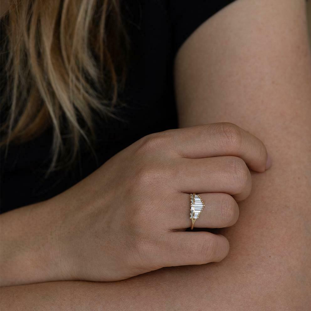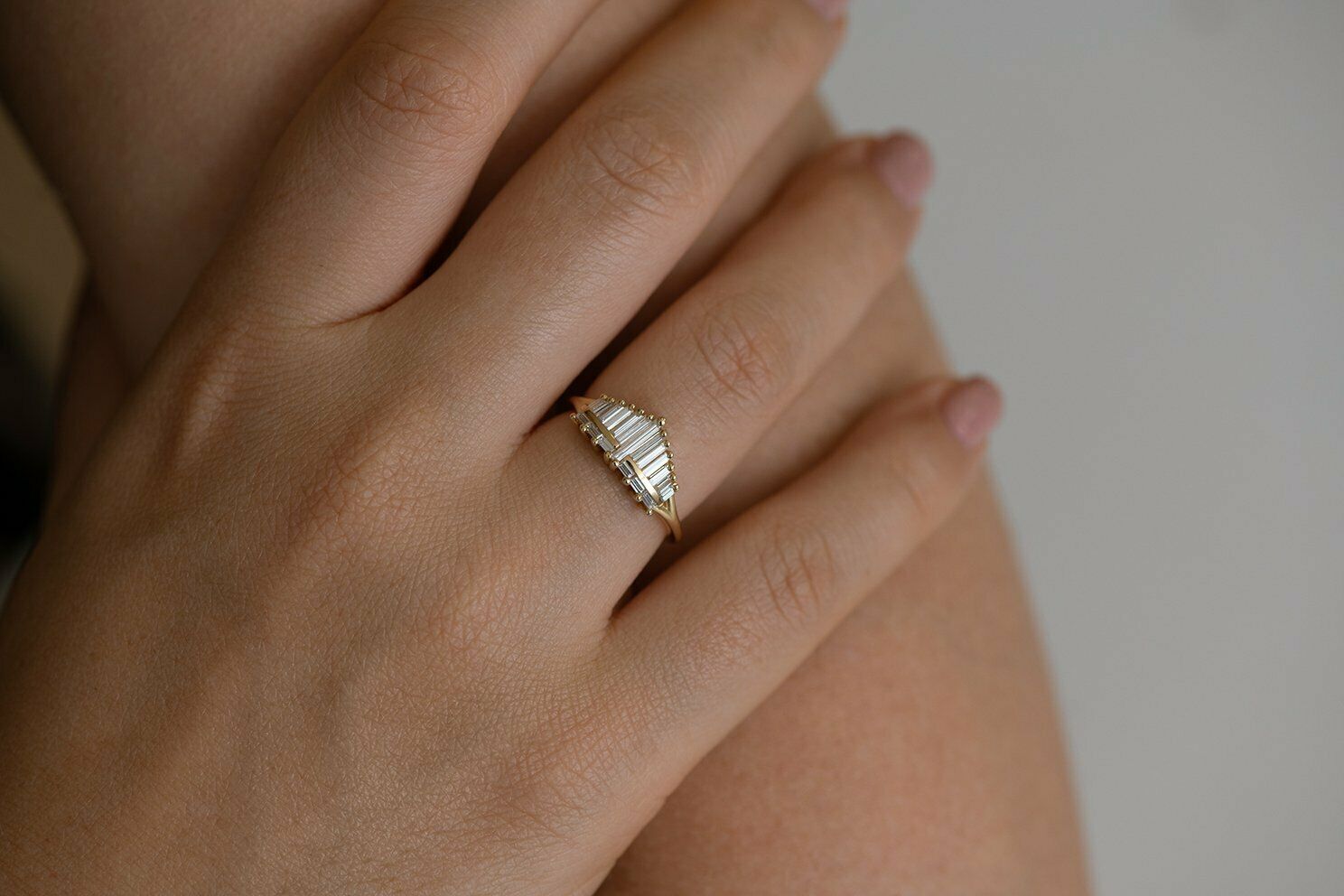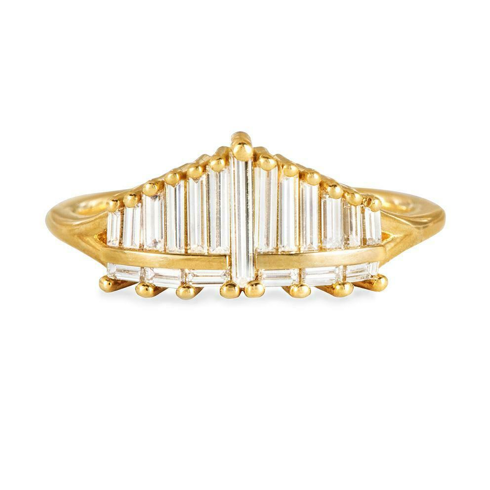 1.5ct Baguette Cut Diamond Engagement Ring 14k Yellow Gold Finish Unique Crown Tiara