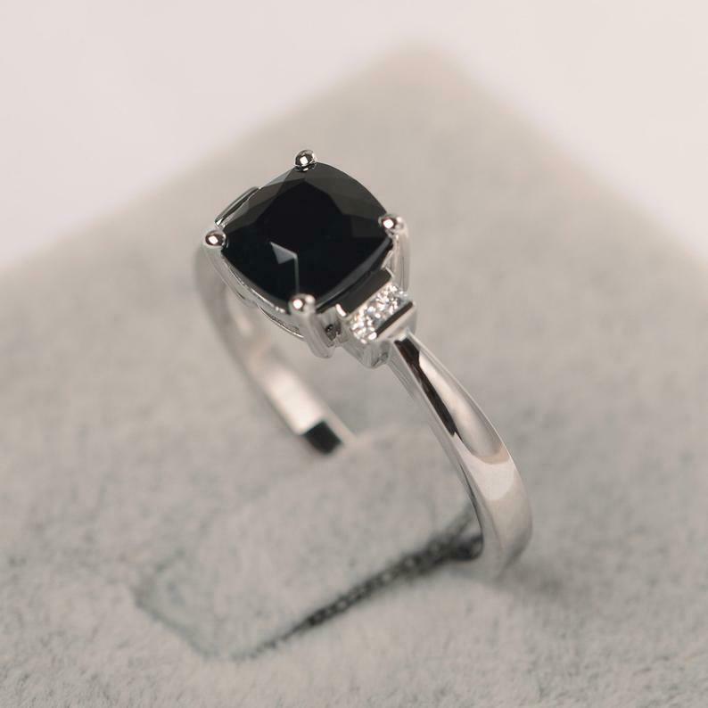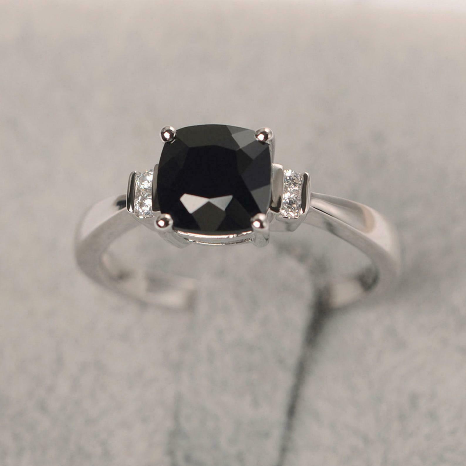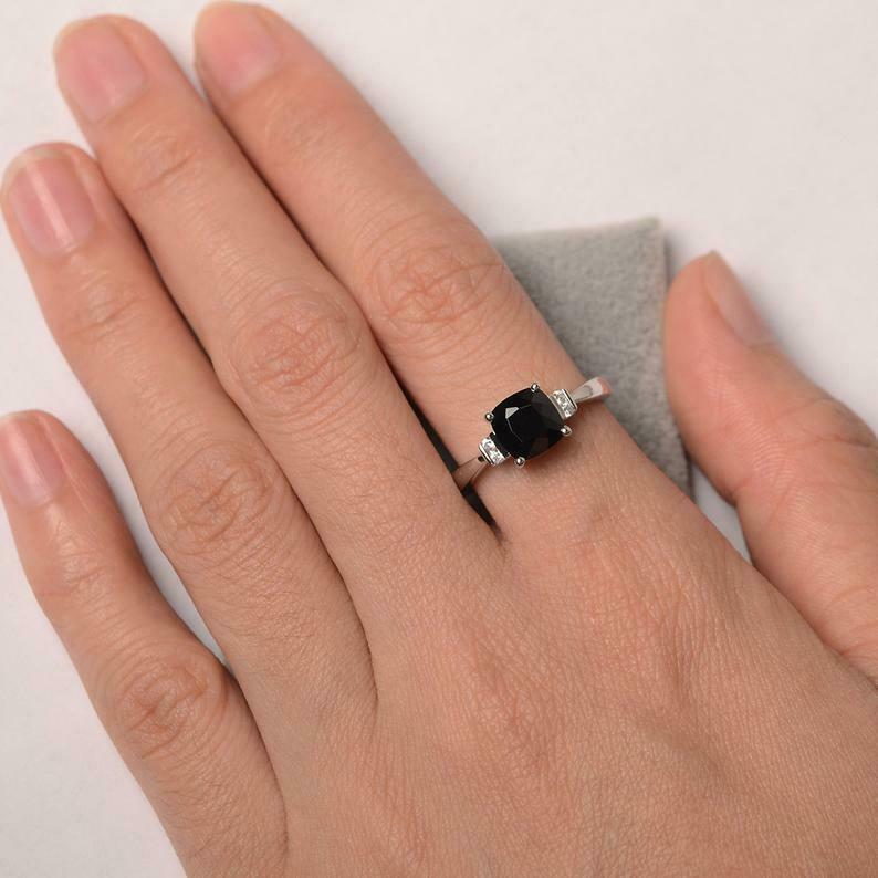 1.5ct Cushion Cut Black Diamond Solitaire with Round Accents Ring 14k White Gold Over
