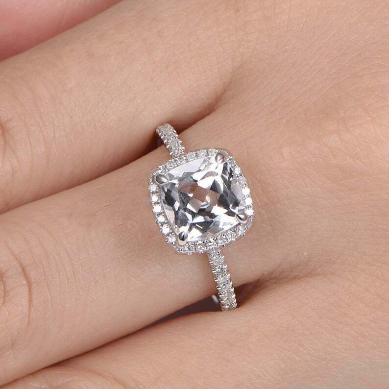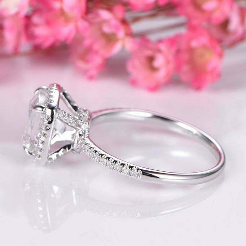 1.5ct Cushion Cut Diamond Engagement Ring Halo Solitaire 14k White Gold Finish