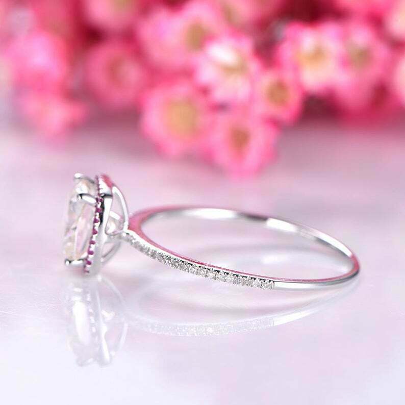 1.5ct Cushion Cut Diamond Pink Ruby Halo Engagement Ring 14k White Gold Finish
