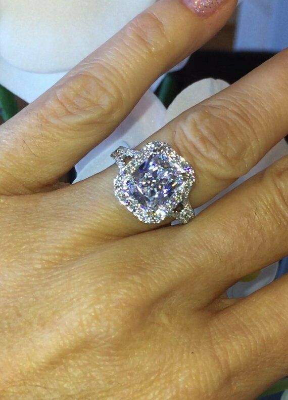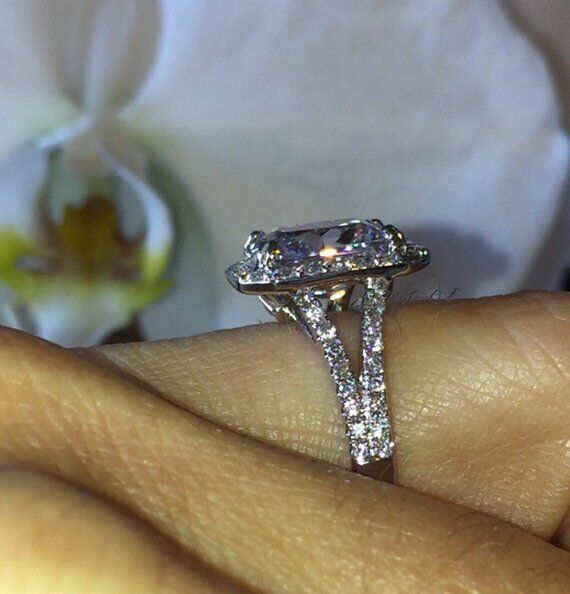 1.5ct Cushion Cut Diamond Split Shank Band Engagement Ring 14k White Gold Finish