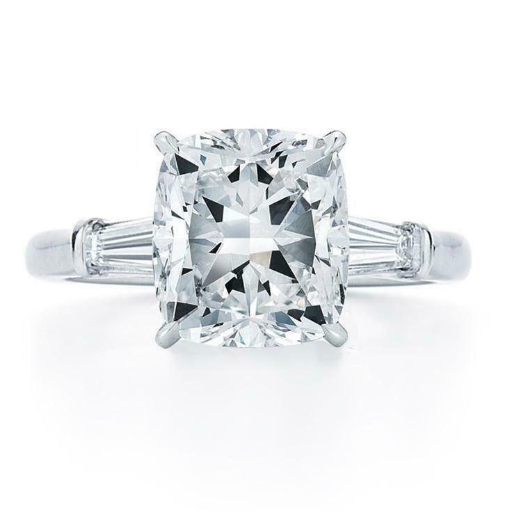 1.5ct Cushion Cut VVS1 Diamond Engagement Ring 14k White Gold Finish Three Stone