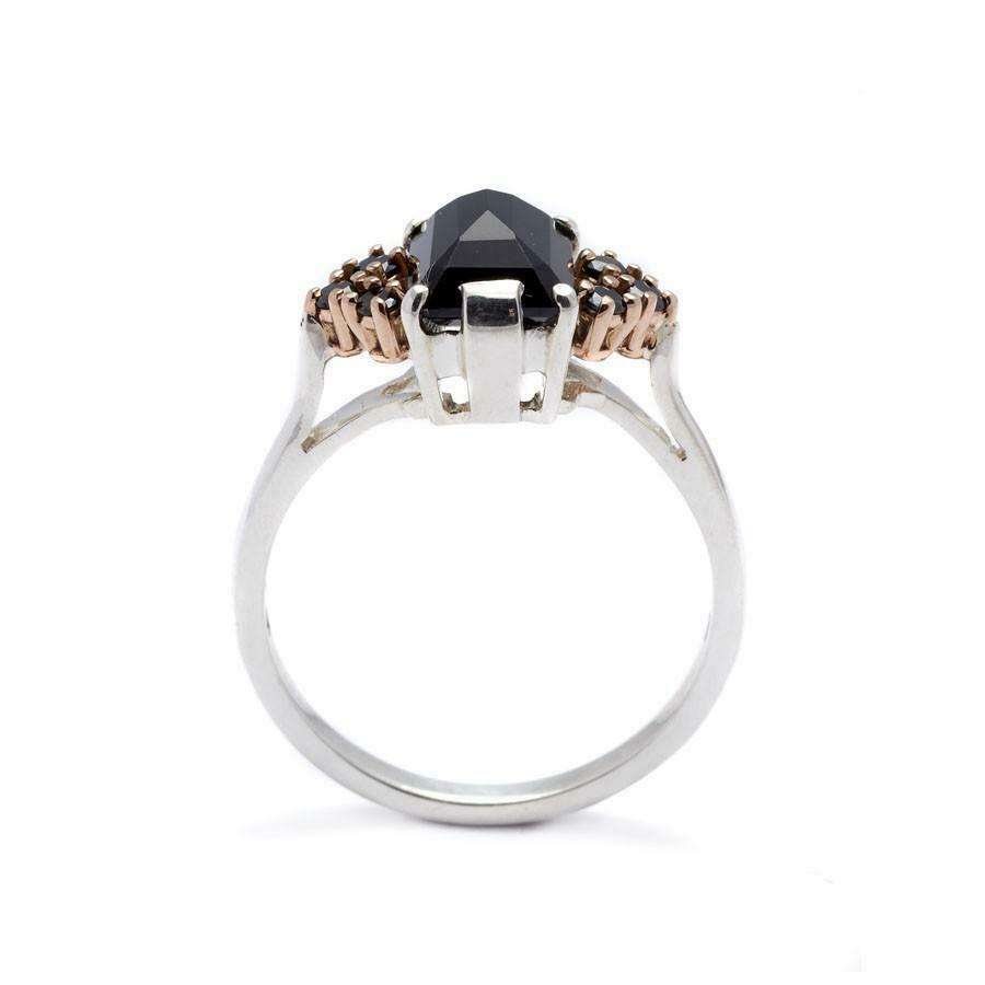 1.5ct Emerald Cut Black Diamond Petite Round Accents Ring 14k Dual Gold Finish