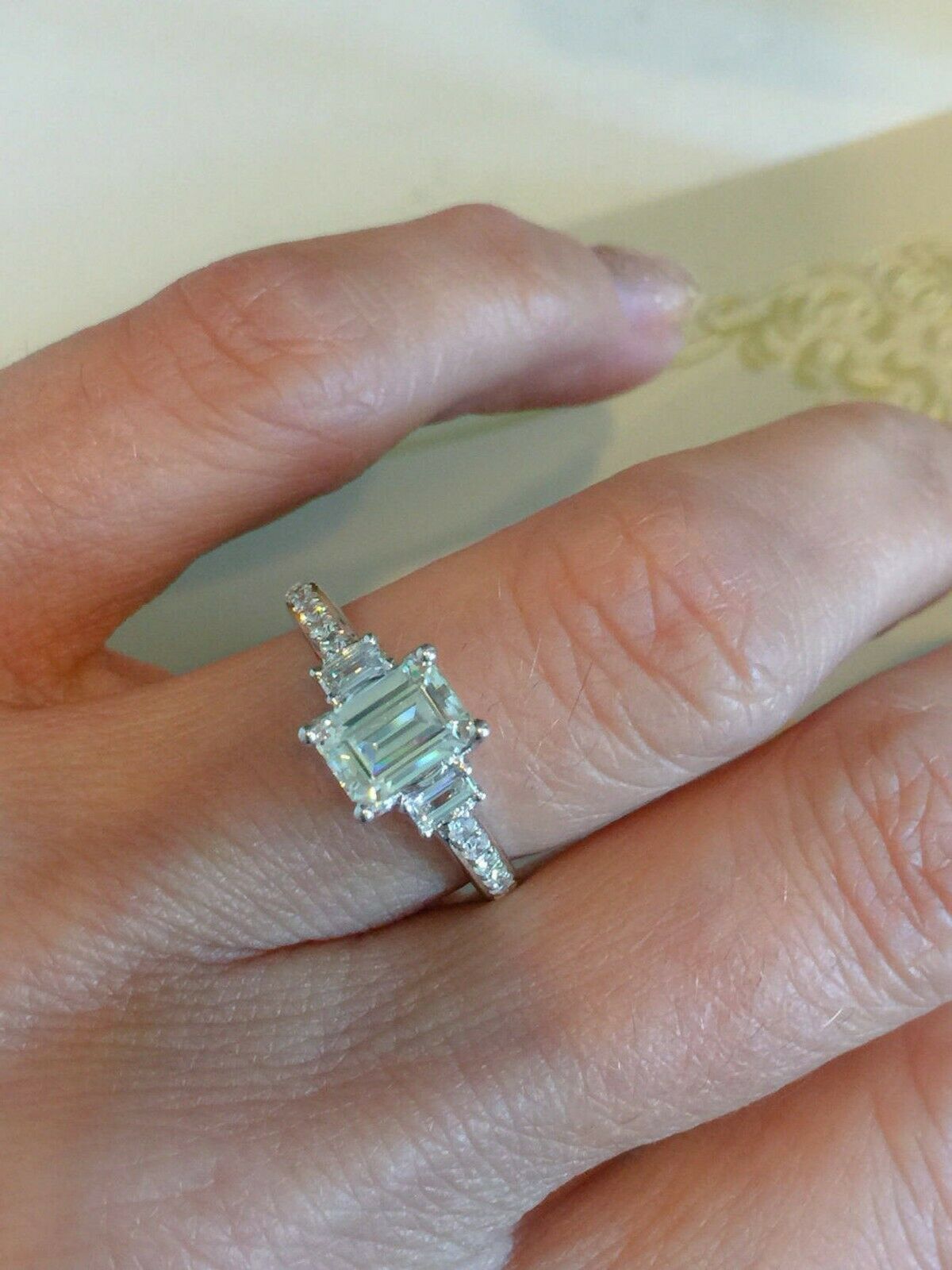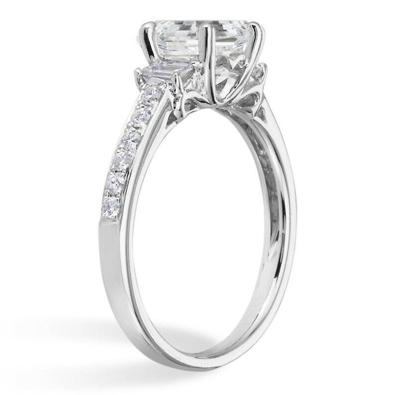 1.5ct Emerald Cut Diamond Accents Trilogy Engagement Ring 14k White Gold Finish