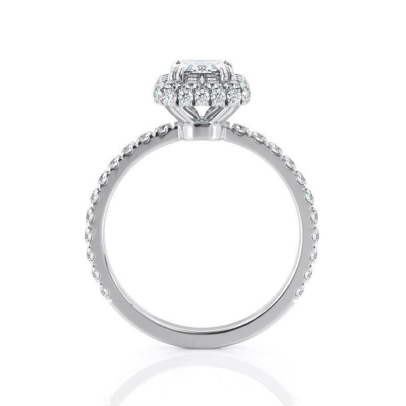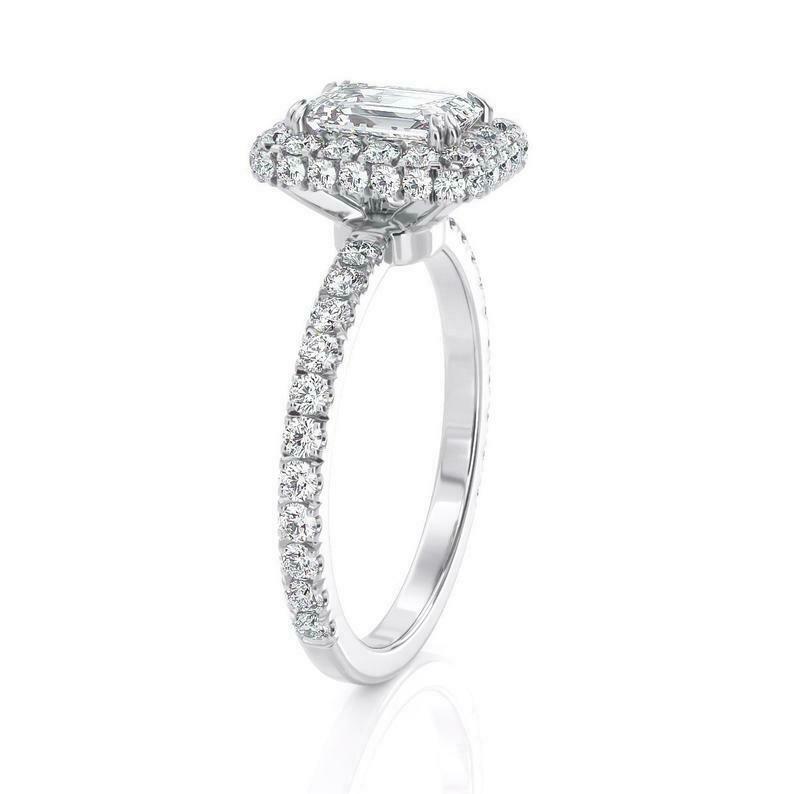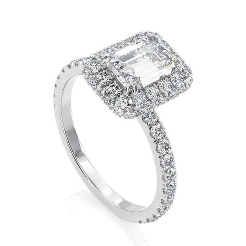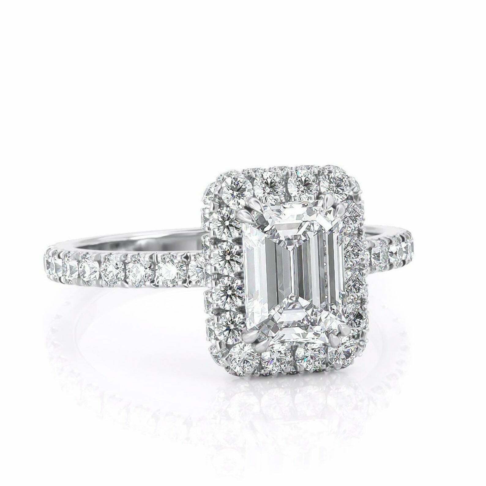 1.5ct Emerald Diamond Engagement Ring Halo Accents Solitaire 14k White Gold Over