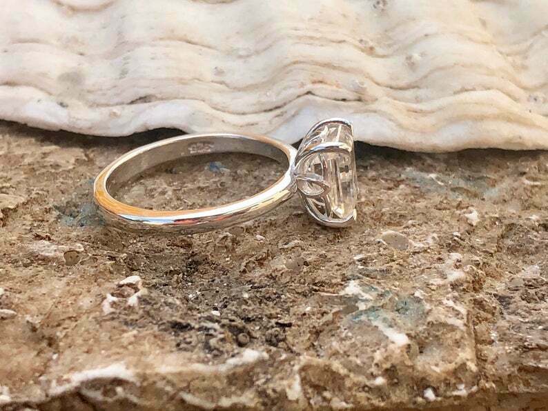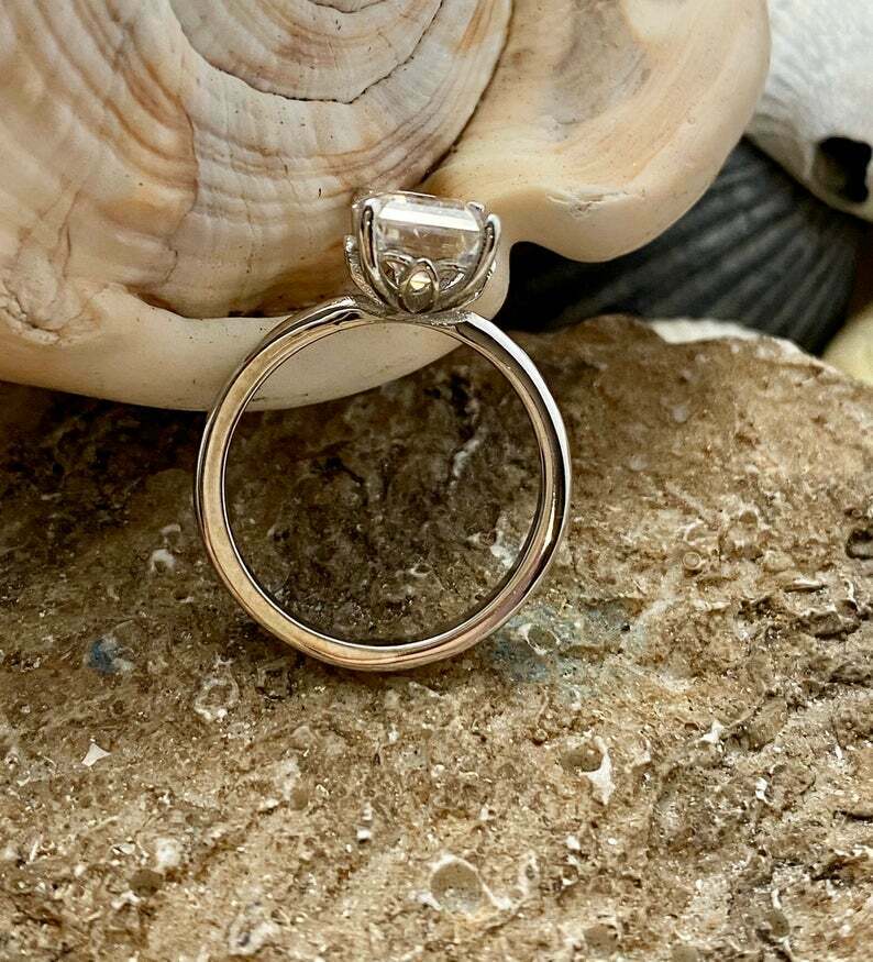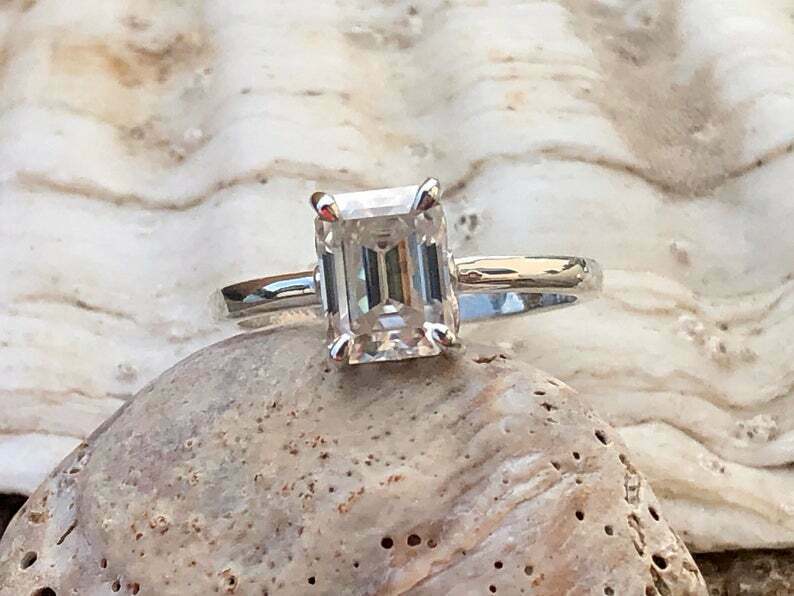 1.5ct Engagement Ring Emerald Cut Diamond 4 Prong Solitaire 14k WhiteGold Finish